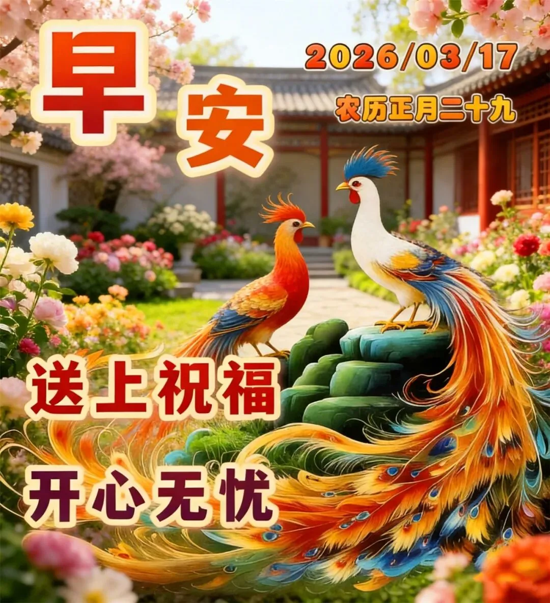 3月17日-周二早安漂亮图片祝福语+新的一天:好运不断!所求皆如愿,万事皆顺遂!周二早安愉快!