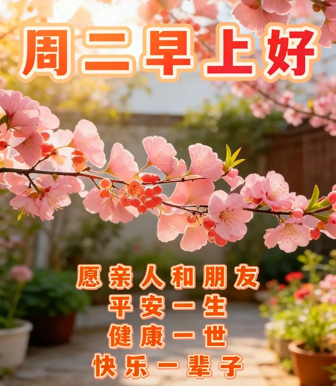 阳光在照,好运在笑,我的祝福一早送到,愿我们在每天的日子里,吉祥如意,幸福安康,周二早上好!