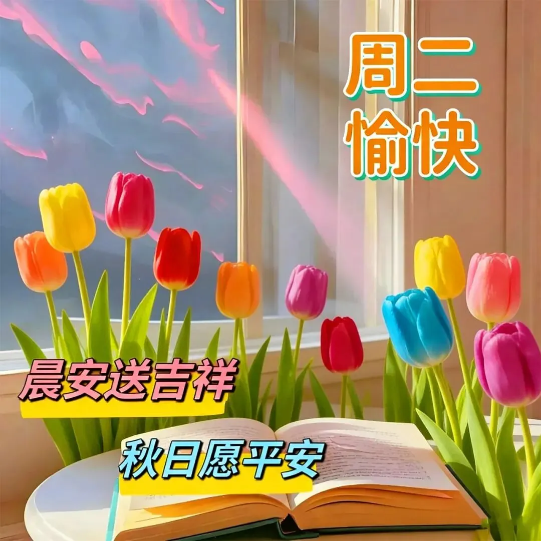 与岁月挥手,和昨日告别,愿幸福年年岁岁,快乐日日月月,健康春夏秋冬,平安每分每秒!新的一天:好运不断!所求皆如愿,万事皆顺遂!周二早安愉快!