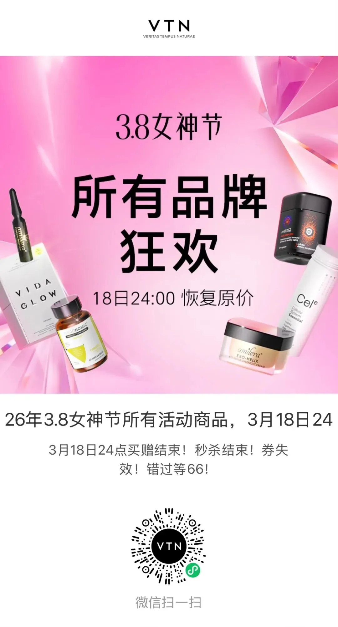 当前位置:首页>美女资讯>VTN3.8女神节-26年3.8女神节所有品牌狂欢,3月18日24点买赠结束!秒杀结束!券失效!18日24:00 恢复原价,错过等66!
