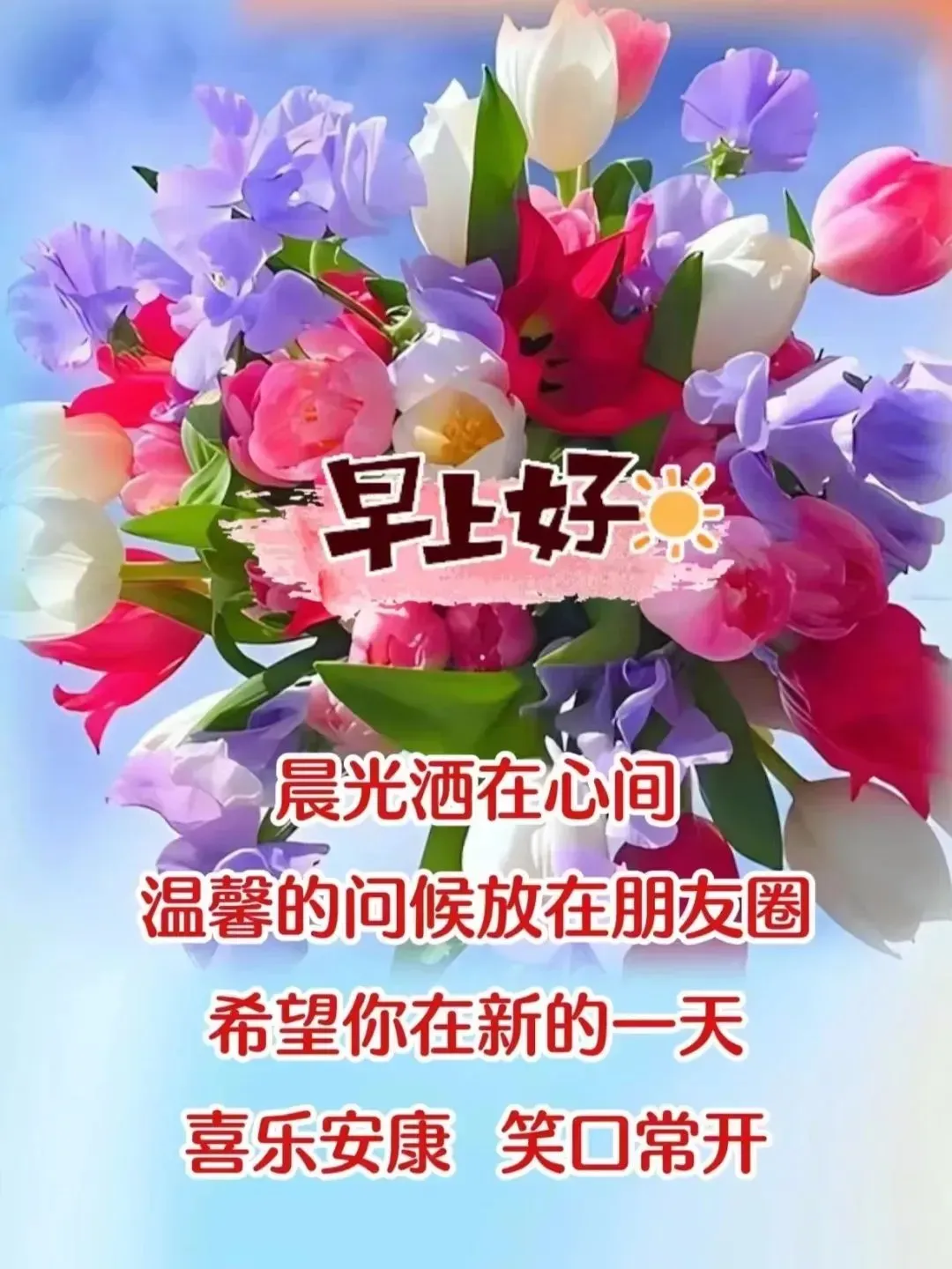 道一句早安,快快起床,收拾好心情,晒晒阳光,温暖一整天,祝福伴随你身旁,简简单单最幸福,早晨希望最光芒,时刻微笑牢牢记,新的一天新希望!