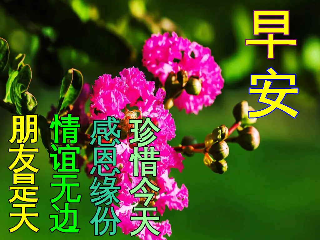 5、人生,要懂得感恩,感恩,不一定是感谢大恩大德,而是一种生活态度,是一种善良的人性美。无论多别扭,你都要学会抽身而退。放下吧,忘记吧,一转身,一抬眼,你就会看见远处风景迷绕。不要因为一条臭水沟,坏了赏美的心境。早安6、多一点微笑,许是愁绪离心远了点,快乐离心便近了些。因为看轻,所以快乐;因为看淡,所以幸福;因为微笑着,所以时时心暖。有时,看老树画画的任何一幅作品,心也都是微笑着的。早安!人生的快乐,走自己的路,看自己的景,超越他人不得意,他人超越不失志。心里放不下,自然成了负担,负担越多,人生越不快乐。计较的心如同口袋,宽容的心犹如漏斗。复杂的心爱计较,简单的心易快乐。早安!