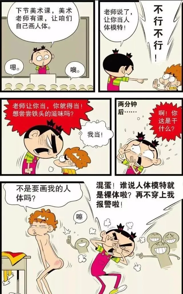 导语:大家好,今天我们继续来分享爆笑校园漫画《阿衰online》中的精彩小故事。在我们的印象中,人体画像需要凸显人体线条个肌肉的美,因此人体模特必须裸露身体,平常人看到后会非常害羞。阿衰和大脸妹最近就当上了人体模特,不过他们却并没有让人难以直视,反而充满乐趣。