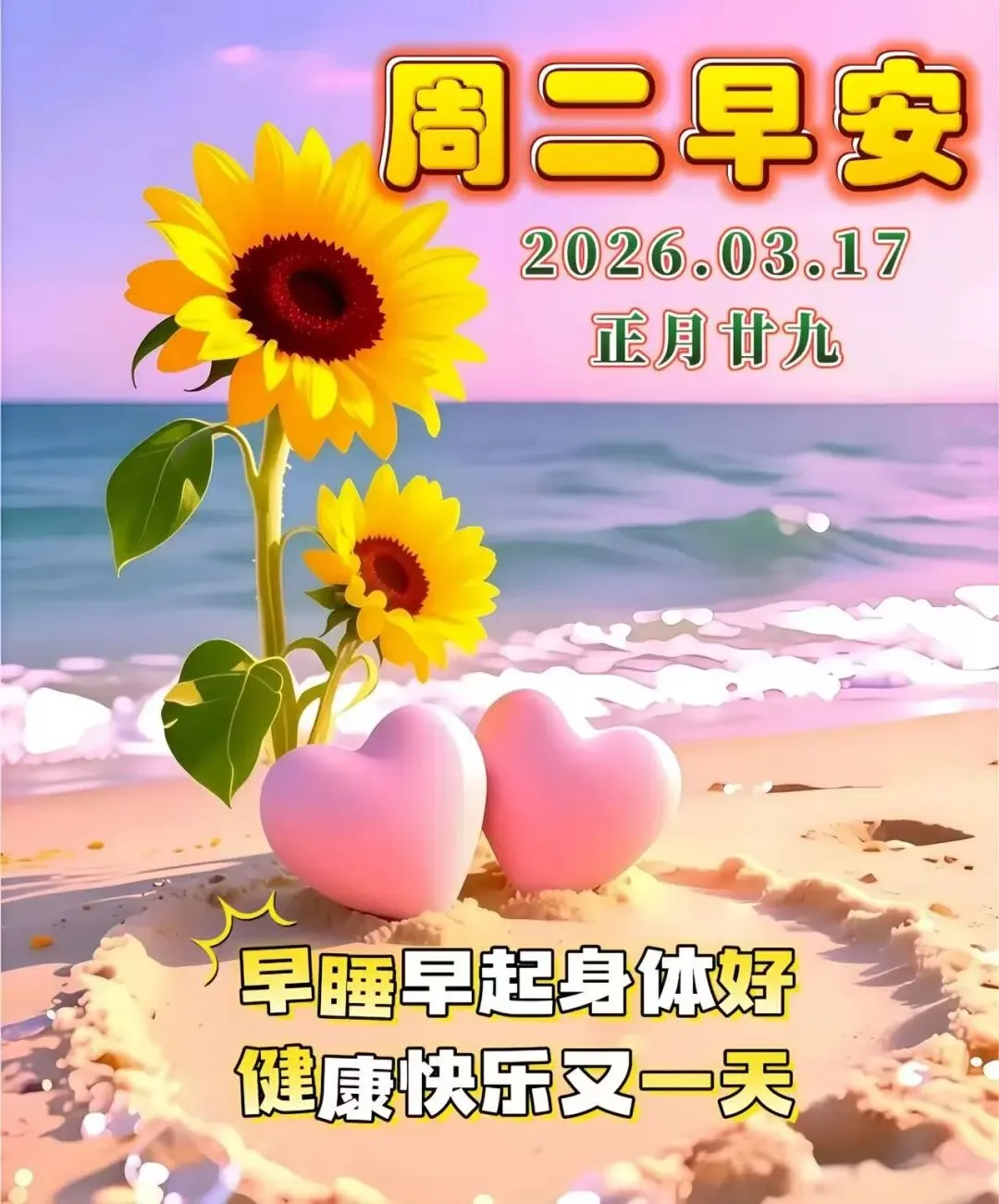 🌞清晨的阳光灿烂无比,💖我的问候温暖无比,🍀新的一天快乐无比。🌅一份美好的祝福,🍁送给朋友,愿你有个快乐的今天,🌹有个美好的明天,💧健康平安每一天!💖 周二愉快!🌷
