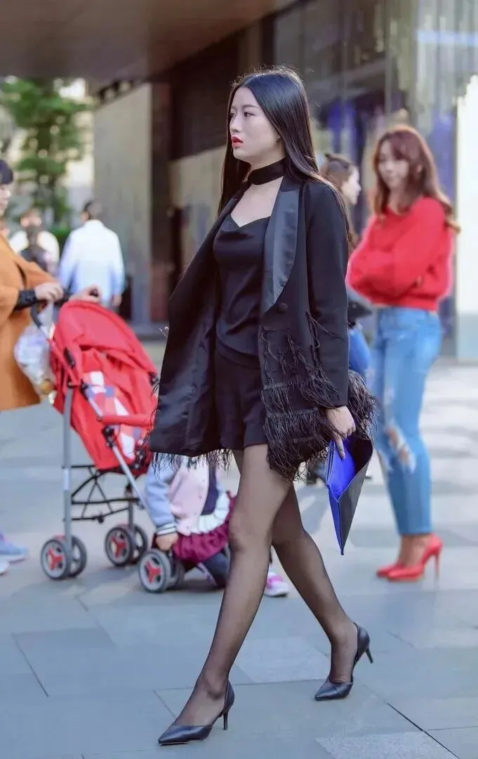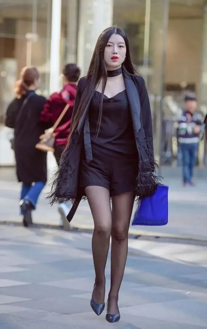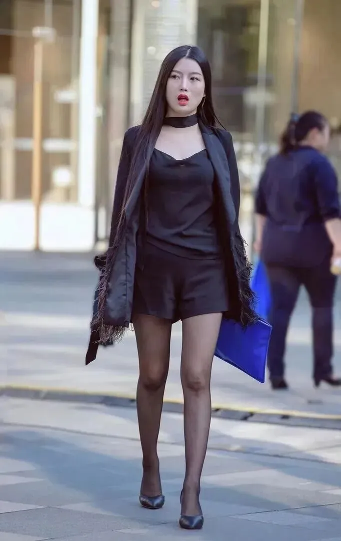 那是在大街上走动时,一眼就把一个女孩的视线吸引过来。她一身黑却并非沉闷,反倒更显得有骨格。那种自信的劲儿,走起来带有风,好多路人被它吸引而回头。全黑穿搭不等于显老气!他人的穿着打扮直接拉满高级感。