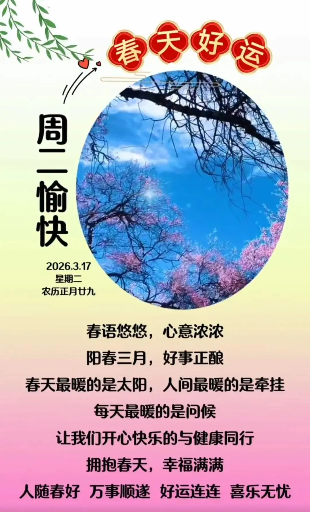 当前位置:首页>美女资讯>3月17日 早安图片 周二早安祝福图片大全最新