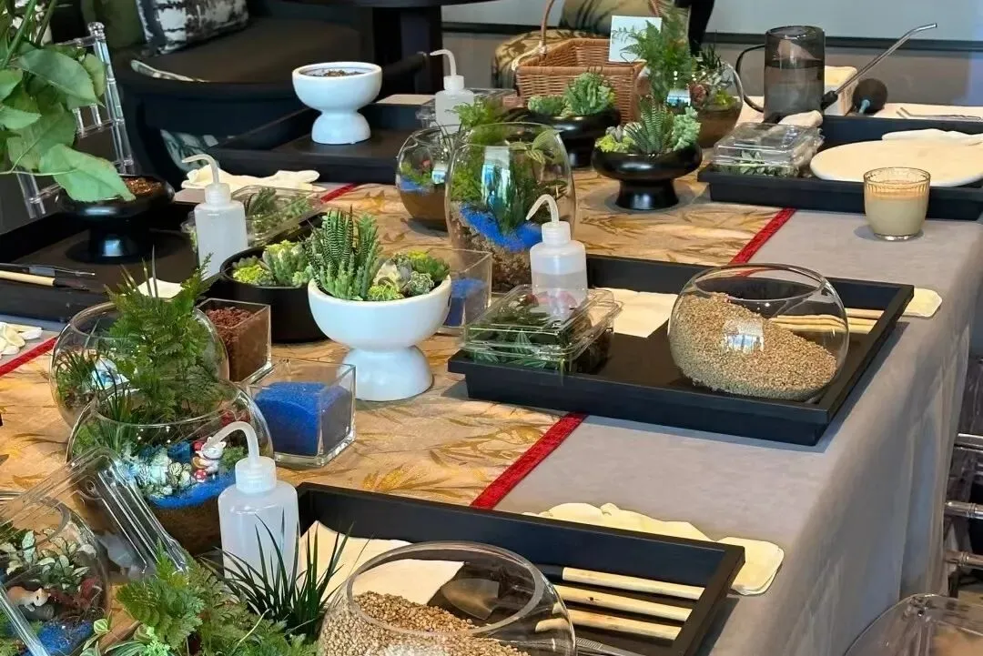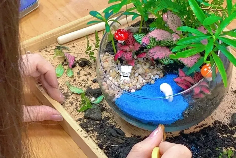 透明的玻璃器皿中,苔藓作底,绿植为林,砂石成径。当一群平日里与数据、方案打交道的女神们拿起镊子,开始搭建属于自己的微缩世界时,整个空间都安静了下来。
