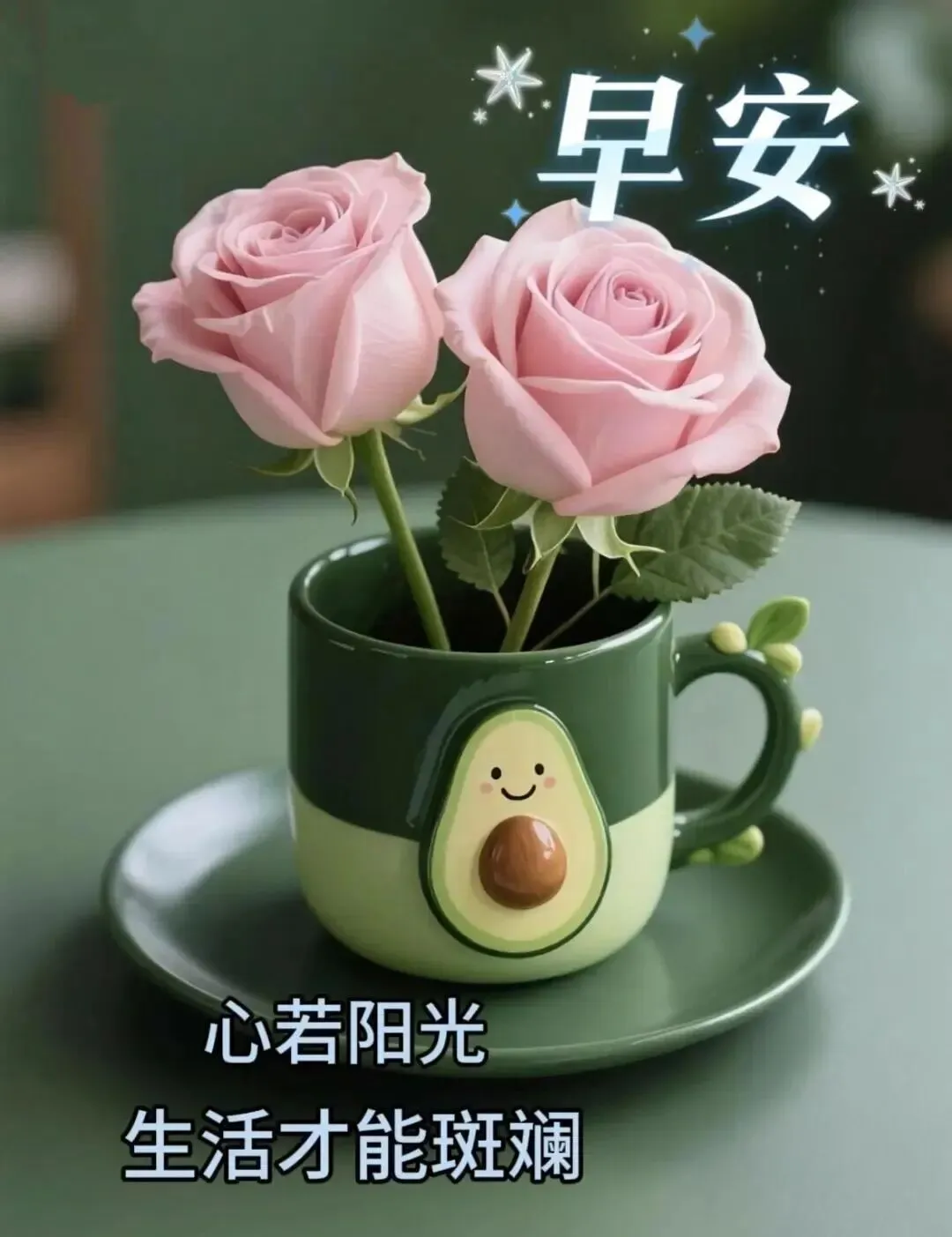 吉祥快乐不离身,世上只有健康亲,每天打开微信看,时常联系有缘人,心里每天常思友,问候祝福在清晨。早上好!🌹💯😊☕️🌞🎉