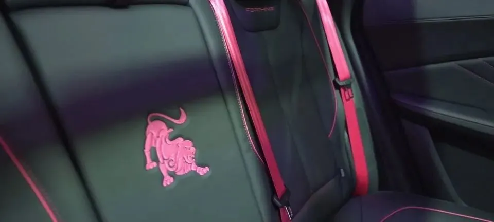 后排座椅上还有“粉色狮子图案”。