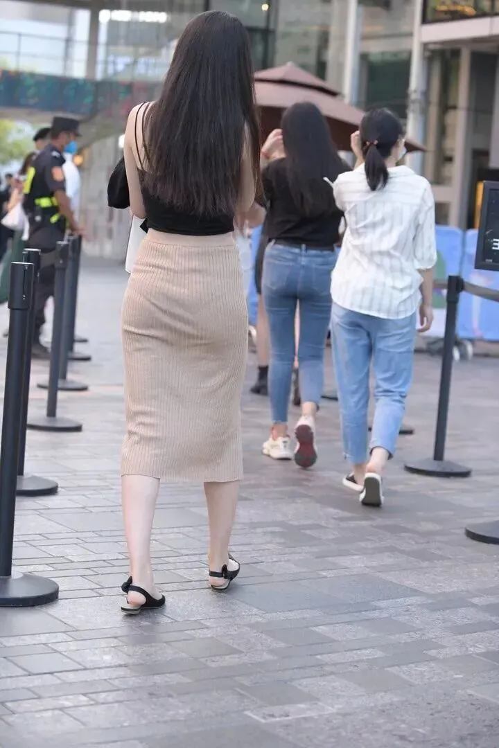 首先看一下基础款搭配。黑色细肩带针织吊带背心+浅卡其色竖坑条针织包臀中长裙,人看上去又瘦有气质。针织面料穿脱灵活、不紧不松,行走时非常飘逸。鞋面上的小蝴蝶结正好给那只脚的黑白连衣裤凉鞋增色添彩了,很纯又稚拙。