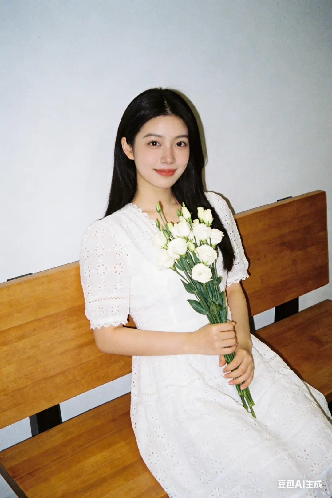 帮我生成一张韩式写真,一个23岁女孩,质感细腻,画面干净高级,撕拉片风格,胶片颗粒感。比例 2:3。