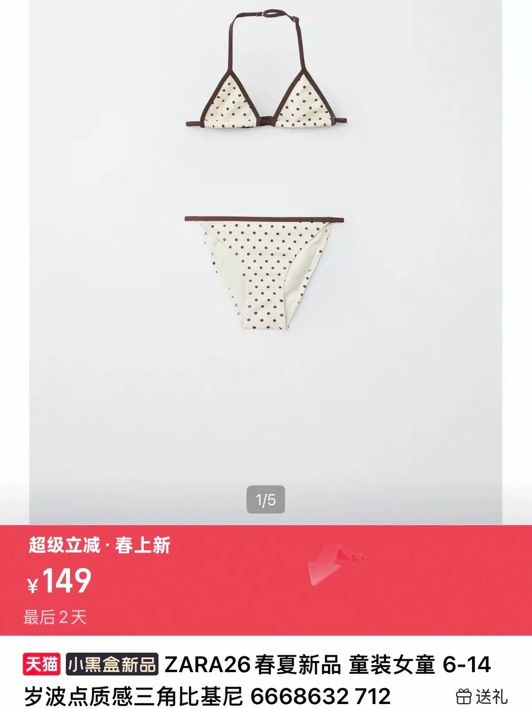 天眼妹注意到,该博主晒出的ZARA泳衣图片中,其中一款标注有“童装女装”“6-14岁波点质感三角比基尼”的内容。