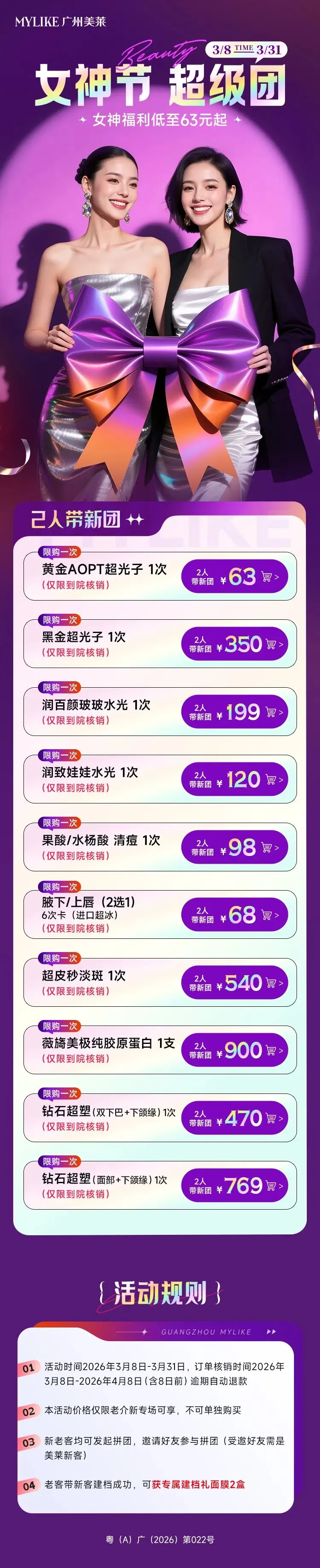 当前位置:首页>美女资讯>手慢无!63元起做超光子,解锁女神变美秘诀