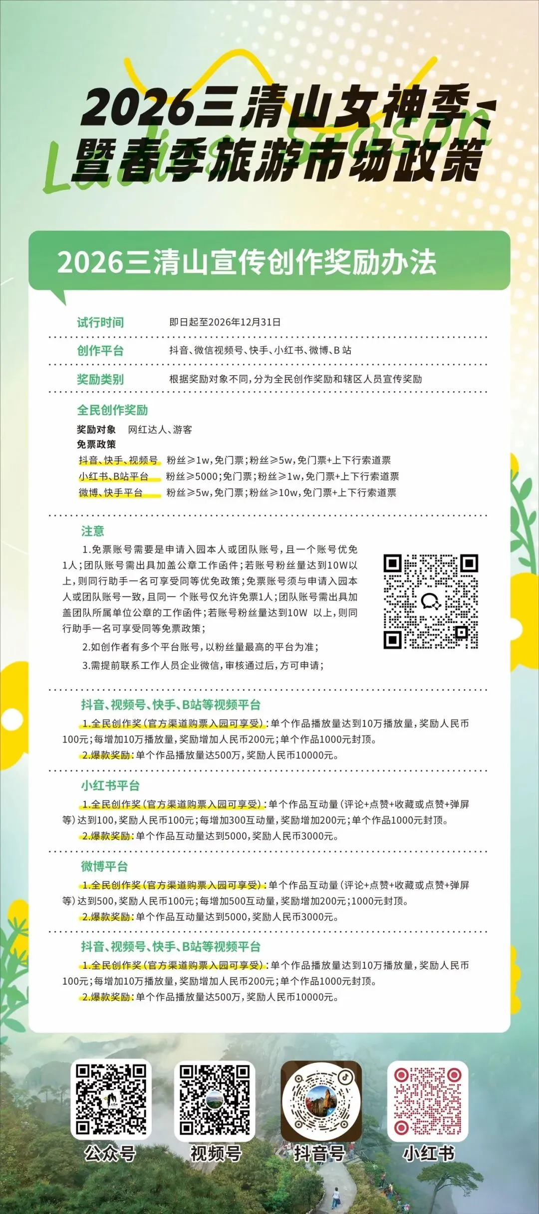 三清山特别推出了全民创作奖励活动