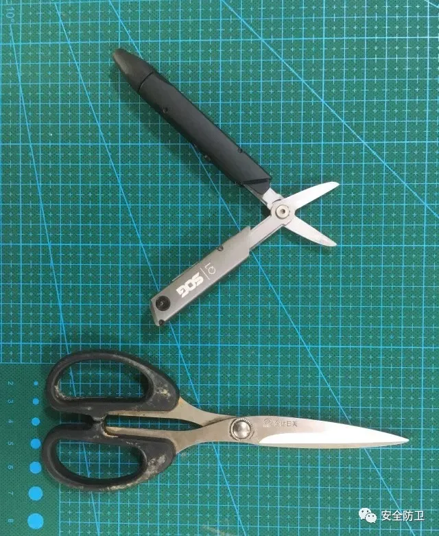 咱们再试一下它的剪切力,我随即找了一把剪刀和它PK一下,俗话说没有对比就没有伤害。
