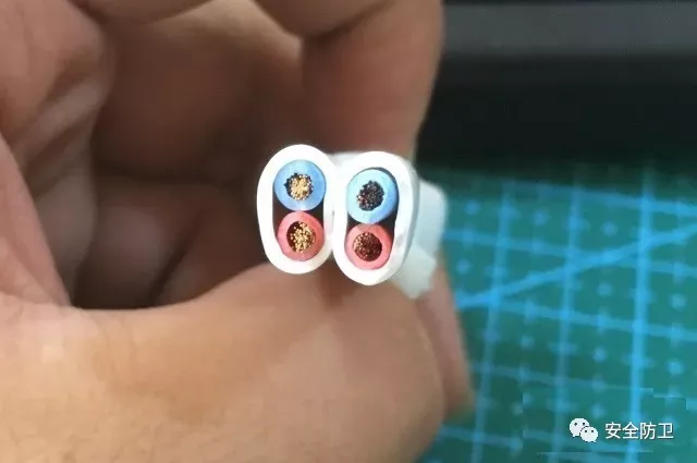 然后咱们来点结实的东西,两芯四平方护套电缆,都是一刀过没有什么迟疑,这次较量双方平手。(左Q1右普通剪刀)