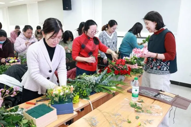3月6日,由校工会主办、园艺学院分工会承办的雅趣工坊之“以花为礼,雅致生活”礼仪花盒制作活动在西校区园艺楼 110 温馨举办。女教工们以花为媒,共赴雅致生活之约,在花香萦绕中舒缓工作节奏、释放生活压力,在亲手创作中感受花艺之美、收获专属喜悦,尽情绽放巾帼风采与生活创意。