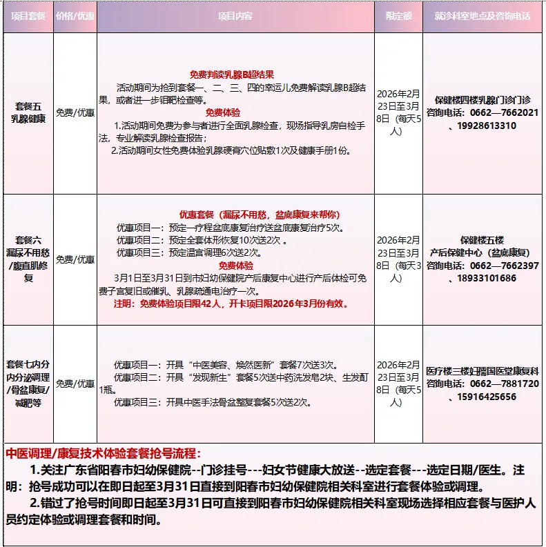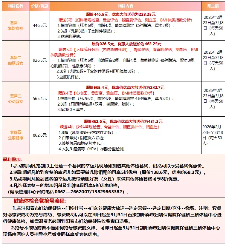 1.线上优惠抢号时间(持续2周):2026年2月23日至3月8日,每日8时准时放第二天的预约号。号源有限,抢完即止。