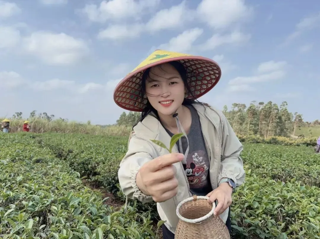 暂别午托的忙碌日常,3月14日,5天午托的女神们率先从集结出发,奔赴廉江茗上茗茶文化园。云雾缭绕的茶园里,大家挎着竹篮,在茶农的悉心指导下学习采茶技巧,指尖轻捻嫩绿茶芽,将春日生机一一采撷
