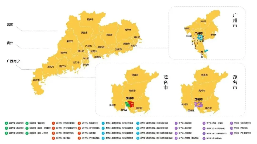 各个教育品牌各有定位、特色鲜明:5天午托秉持“给您孩子一个5心级的家”的使命,致力于打造五星级午托第一品牌;惠带娃坚守“科学照护、普惠共享”的品牌理念,为家庭提供高性价比的照护服务;如家学堂以“让每个孩子如在家一般健康快乐成长”为使命,矢志成为本土市场特色午托标杆品牌;学子优聚焦素质教育与AI人工智能科技两大核心板块,汇聚专业师资力量,依托“AI+素质教育”双核驱动模式,以学生为中心整合优质教育资源,真正践行“学子优优学子”的品牌理念。