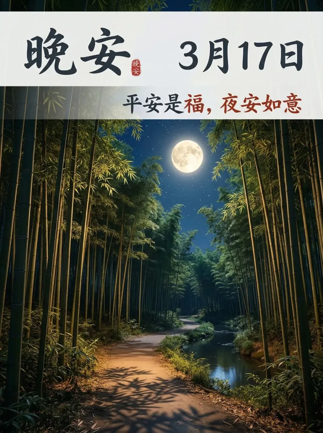 今天是2026年3月17日,农历正月二十九。忙碌了一天,夜幕降临,该歇歇了。在这温柔的夜晚,送你一份最暖的晚安祝福🌙✨💖