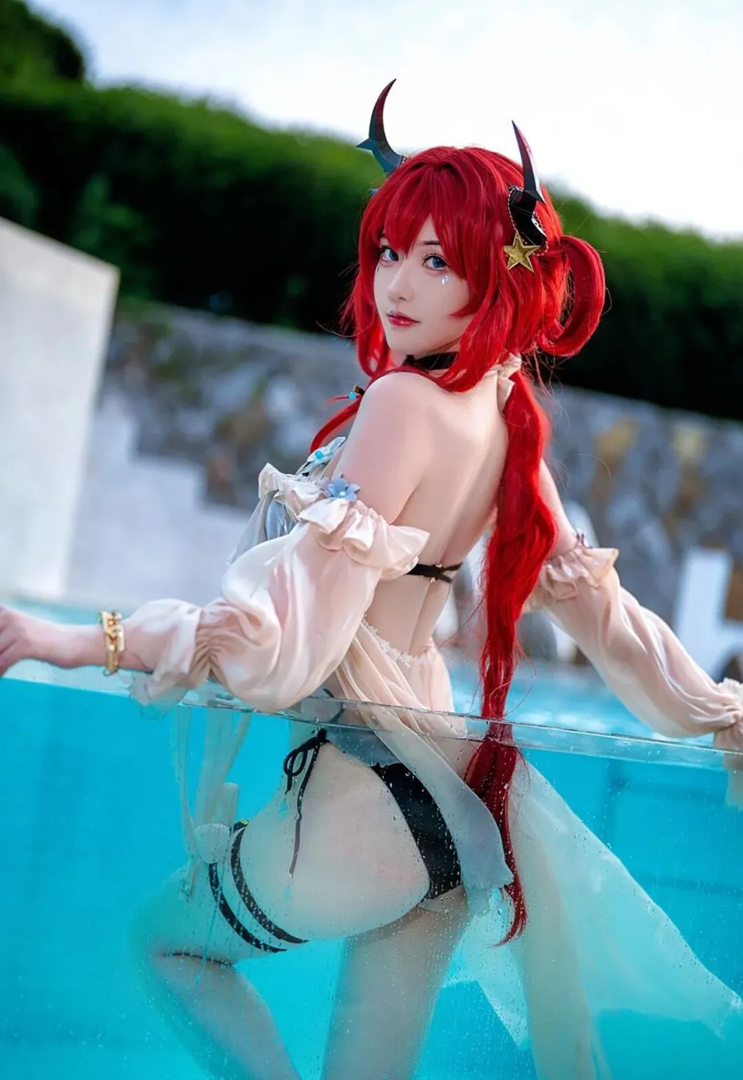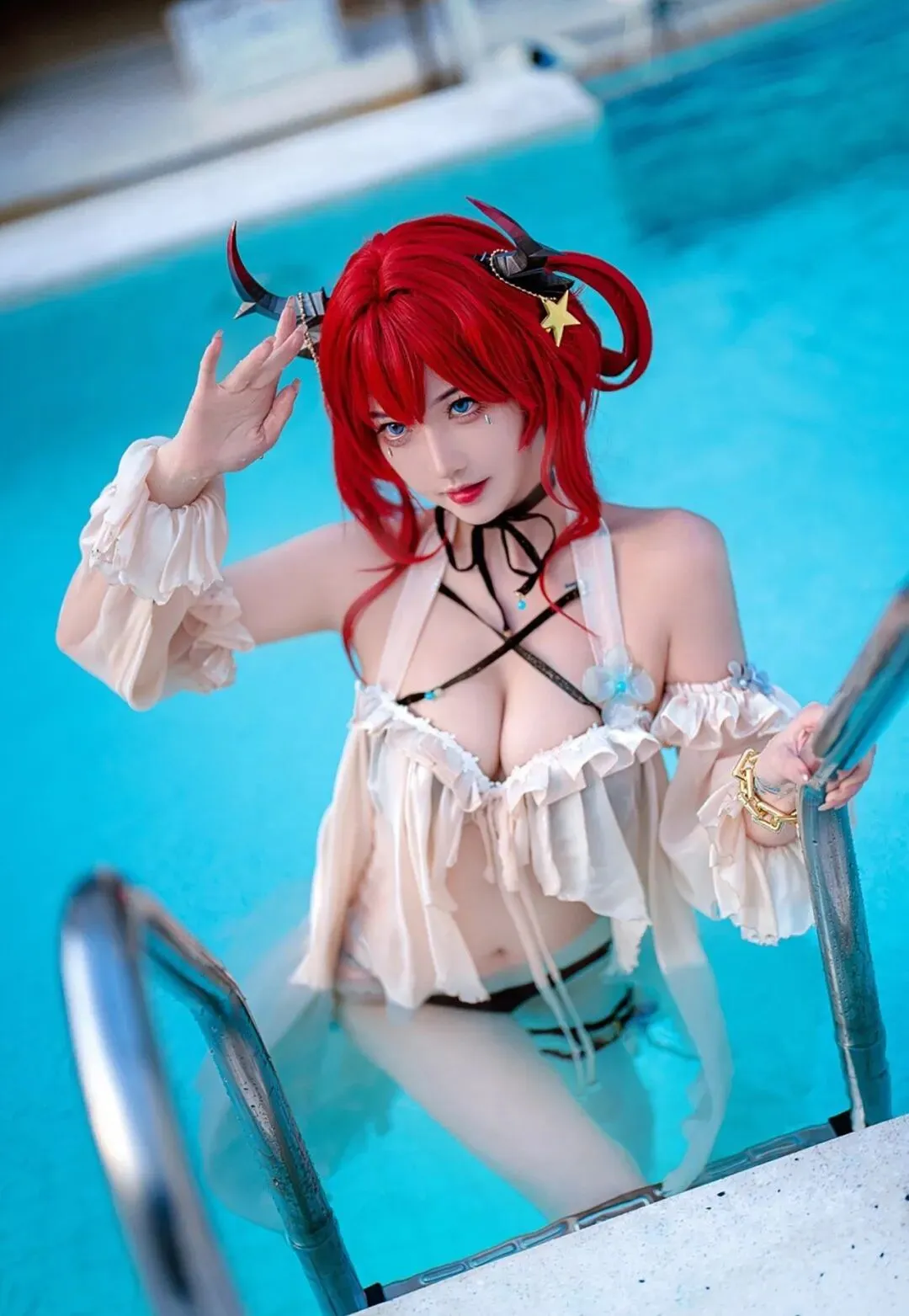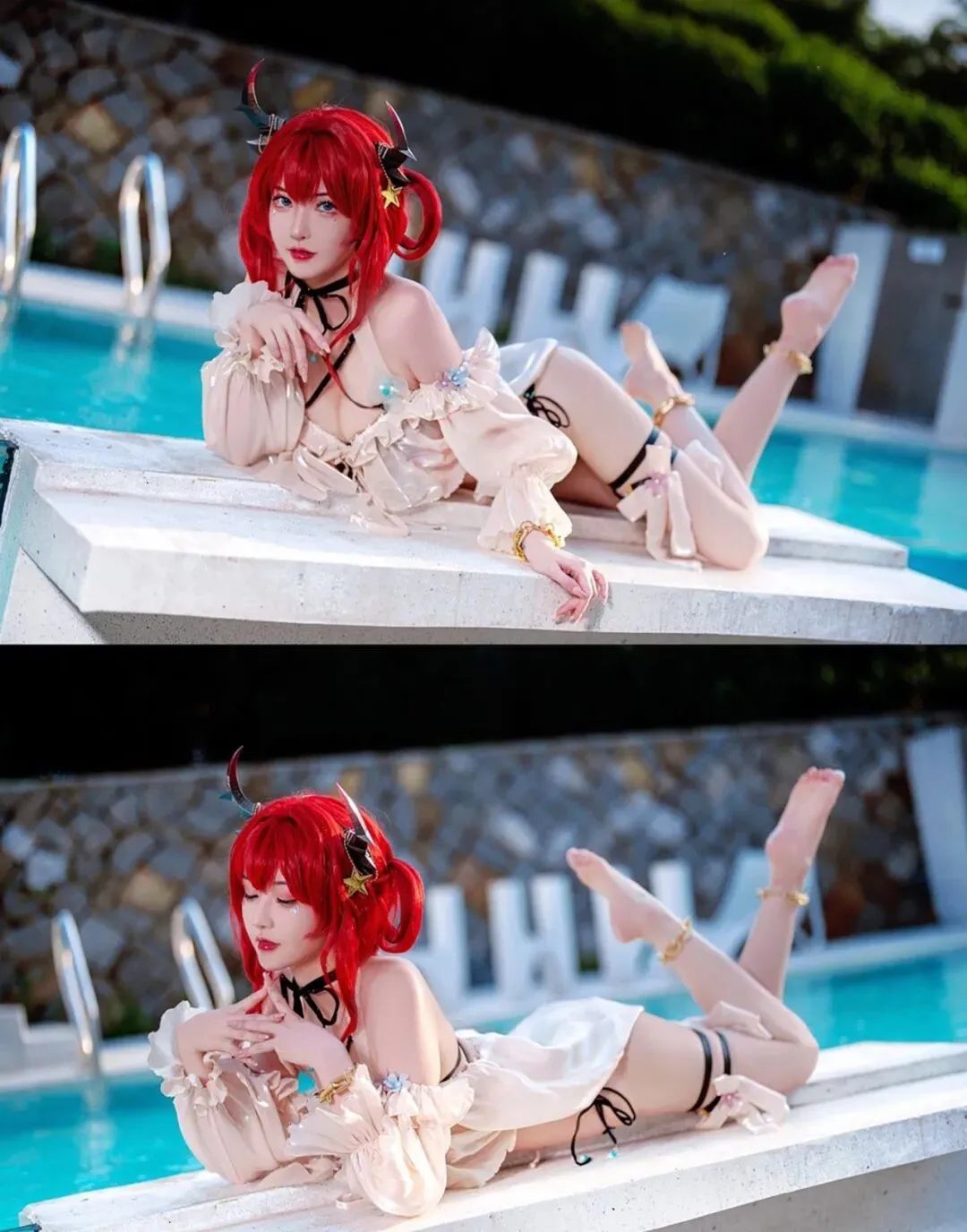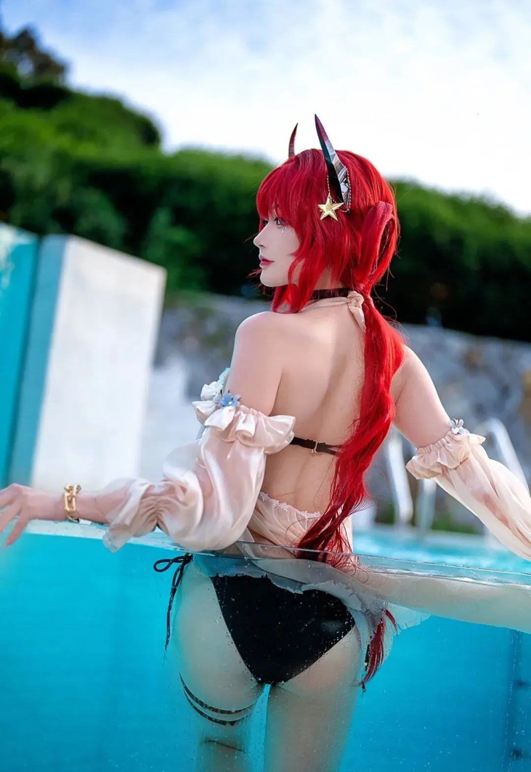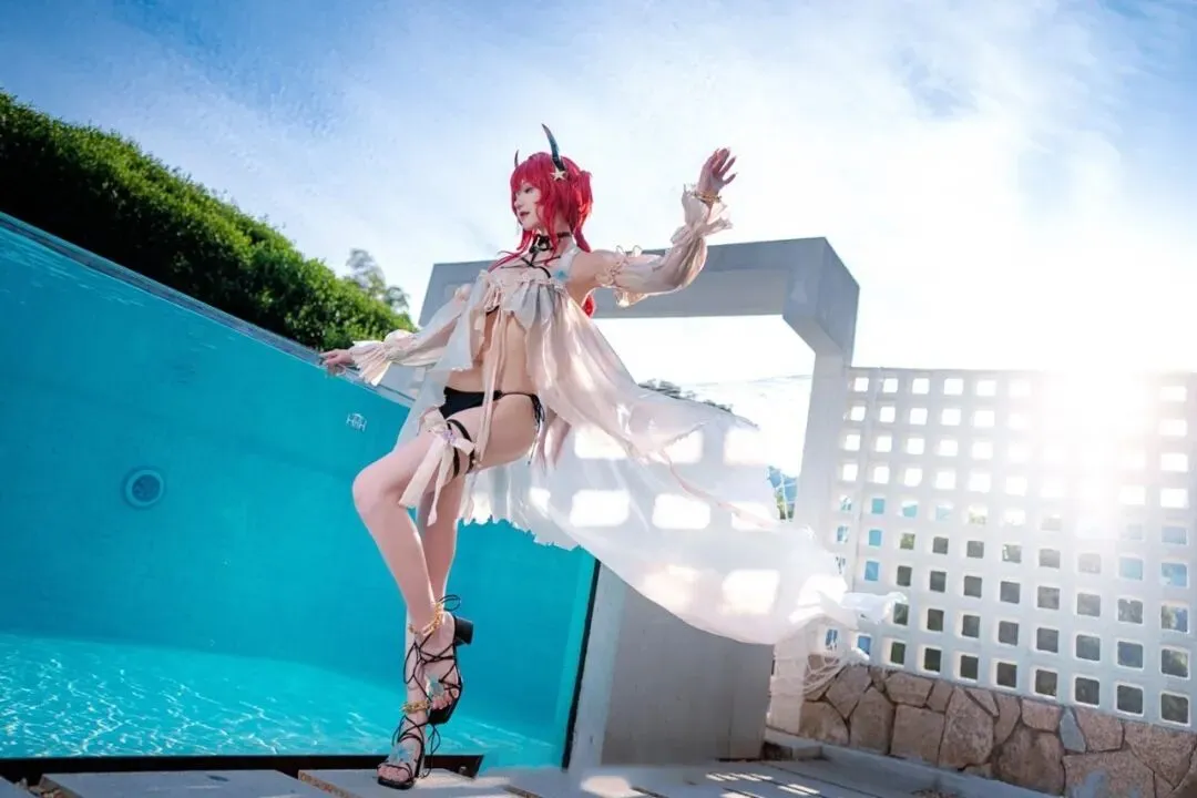 点评:哇塞!这是什么神仙身材!史尔特尔的泳装造型一出场就把夏日氛围拉满了。露兒大魔王_的身材管理也太绝了吧,这腰线、这比例,我直接就是一个大写的羡慕!火红的发色在阳光下闪闪发光,不愧是"夏日的温度就如我的发色一样火热"~