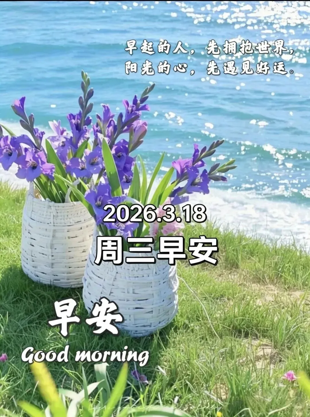 2026年3月18日星期三早上好图片,最新周三早安漂亮动态图片,周三祝福语精选.