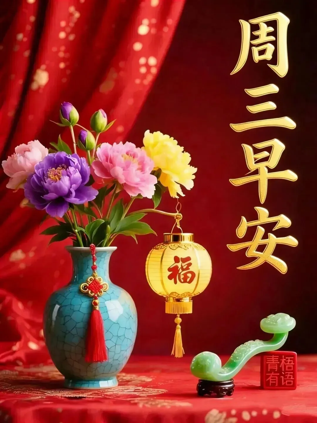 14. 周三早上好🌤️!马年添福运,周三送安康~愿你晨起精神足,喝茶解乏无疲惫,工作高效节节高,生活自在乐逍遥,脚步轻盈走四方,日子红火又幸福🍵✨!