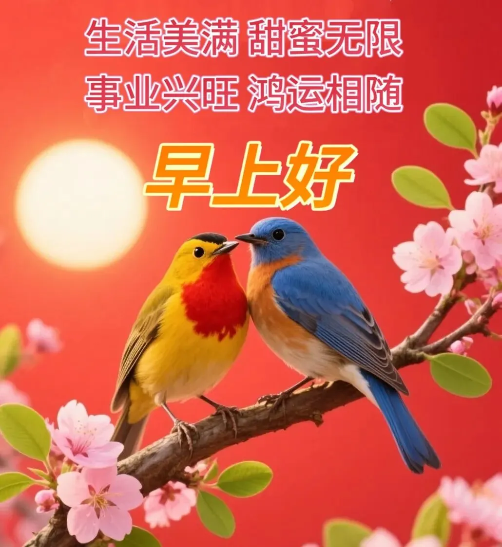 手机一声响,太阳蹦跳出山笑;手机两声响,小鸟叽喳伴晨闹;手机三声响,雨露清风围心绕;手机四声响,开心欢笑不住脚;手机再一响,祝福字句眼前撂;眯眼瞟一瞟,好运幸福就来到!早安,愿你快乐一整天!
