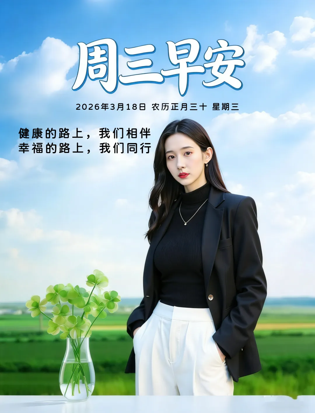 3月18日-星期三美女早安图片 周三早安祝福图片