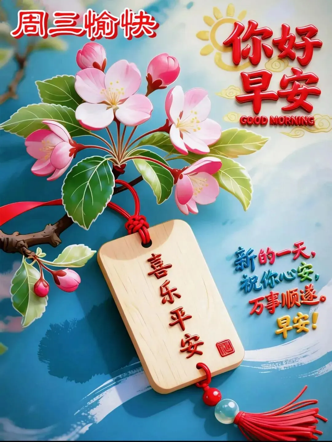 清晨早安送吉祥,瑞气盈盈绕身旁。
