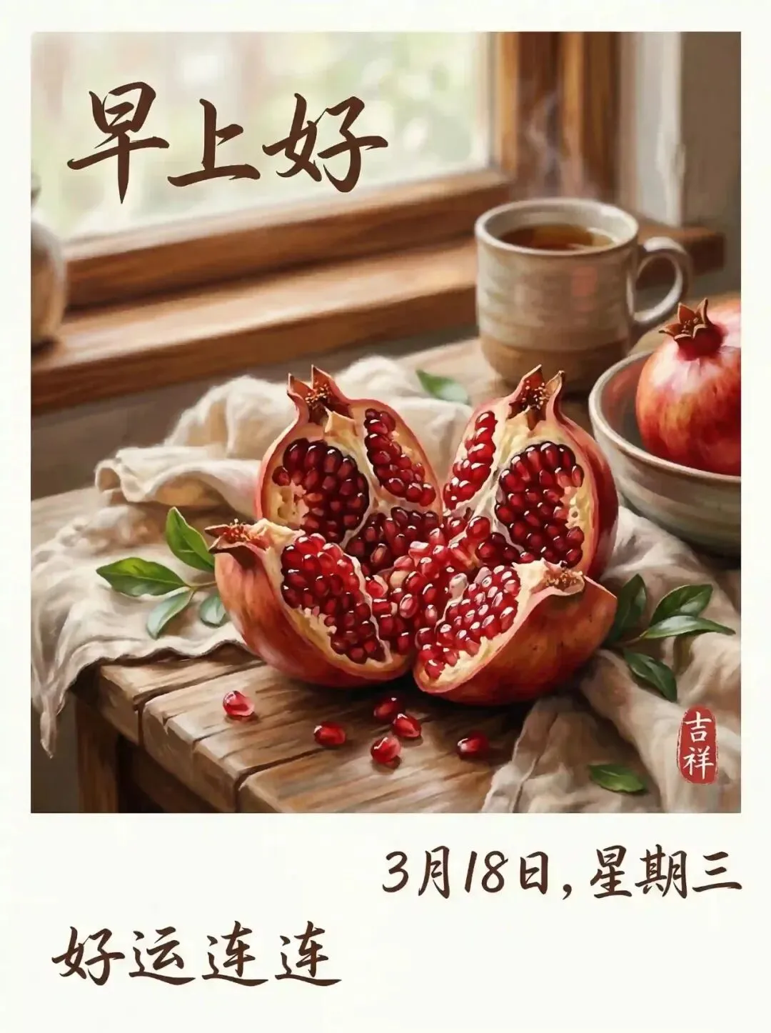 【原创美图】3月18日早上好问候语带字图片,祝您开心快乐每一天!