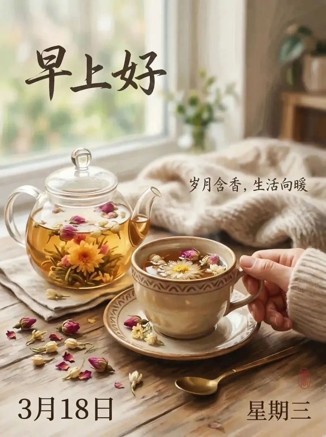 繁华落尽,平淡是真;喧嚣散去,宁静最美。愿您在一缕茶香中品味生活,在一句问候里感受温暖。早安,老伙计!🍵