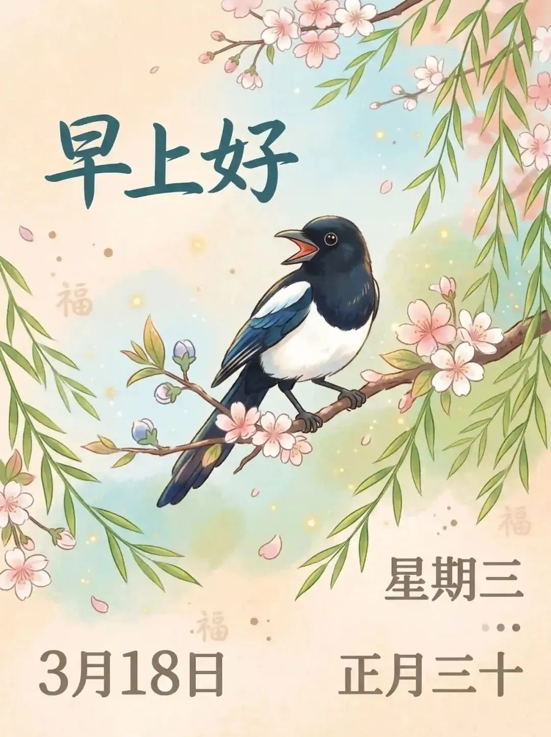 ╭══ 🌟祈福迎祥 ══╮┊🎉 3月18日 · 星期三┊🌹 福气满满┊💖 财源广进┊🎁 岁岁平安╰══════════════╯