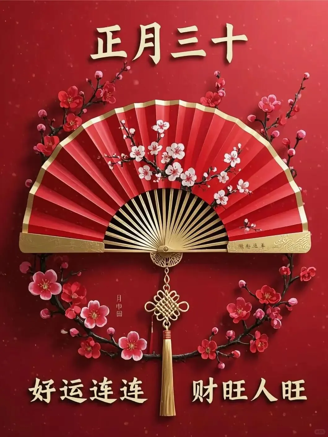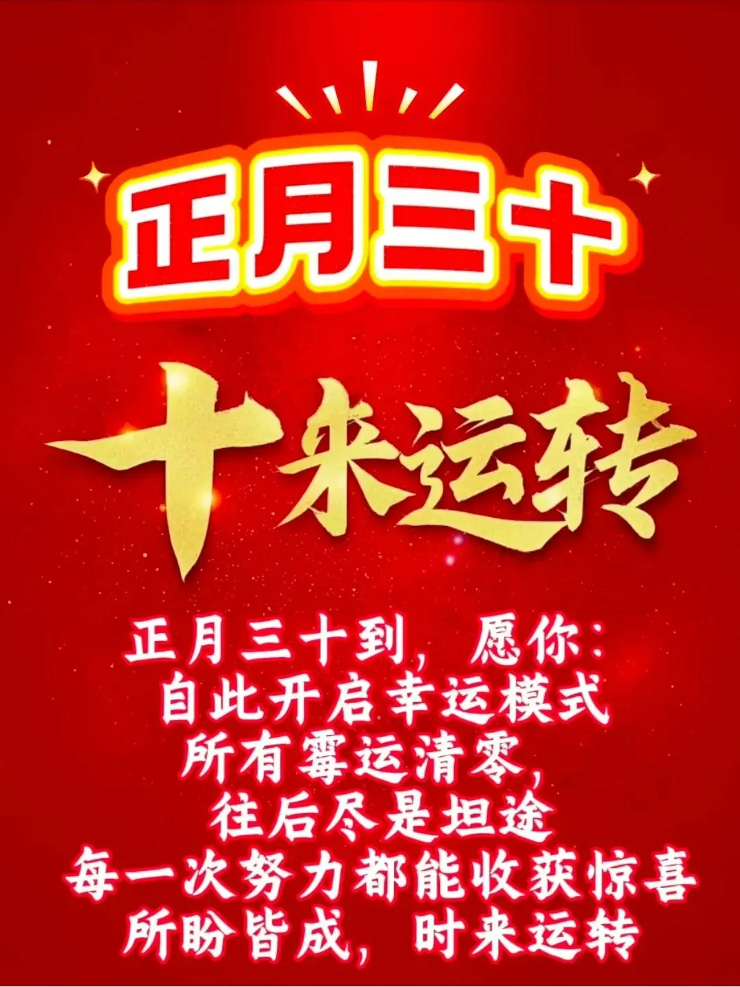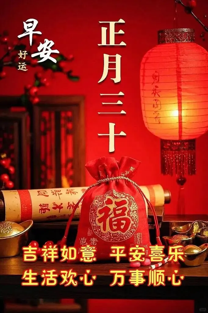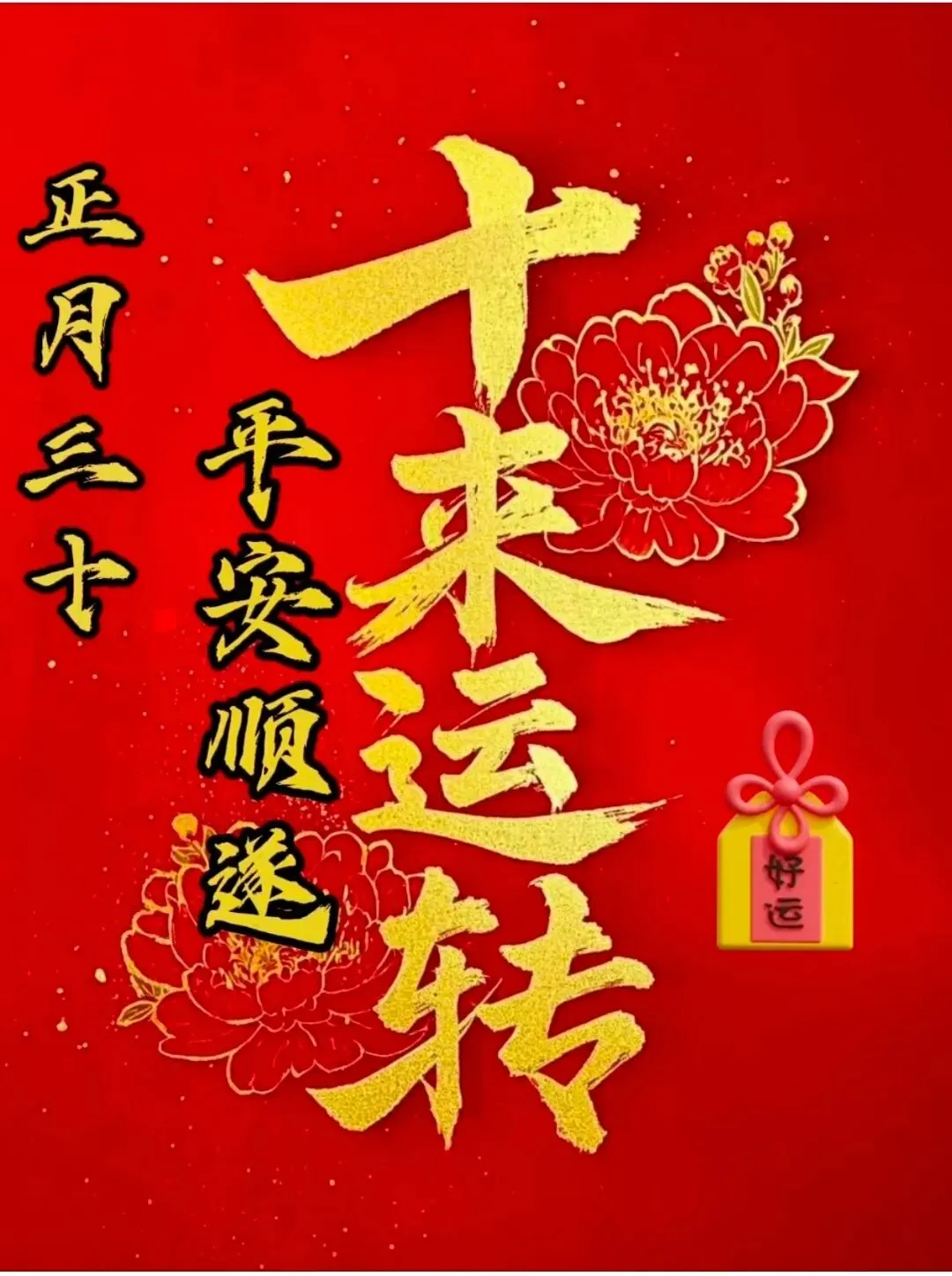 正月三十,愿你财源滚滚,事业有成,健康平安,好运连连,福气满满。祝你和家人新的一年里,每一天都充满阳光和欢笑,幸福美满,万事如意🌹
