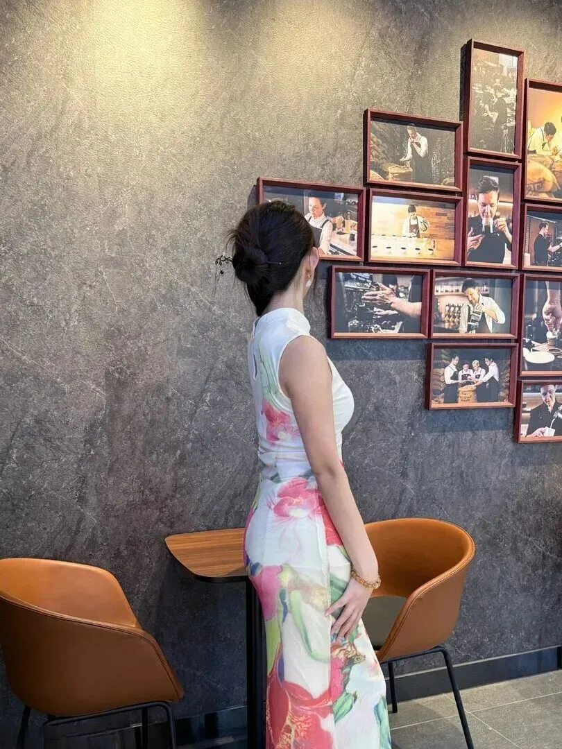 咖啡馆邂逅旗袍女神!这身穿搭美到让人忘记喝咖啡