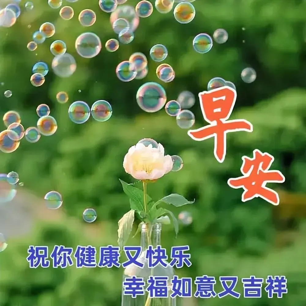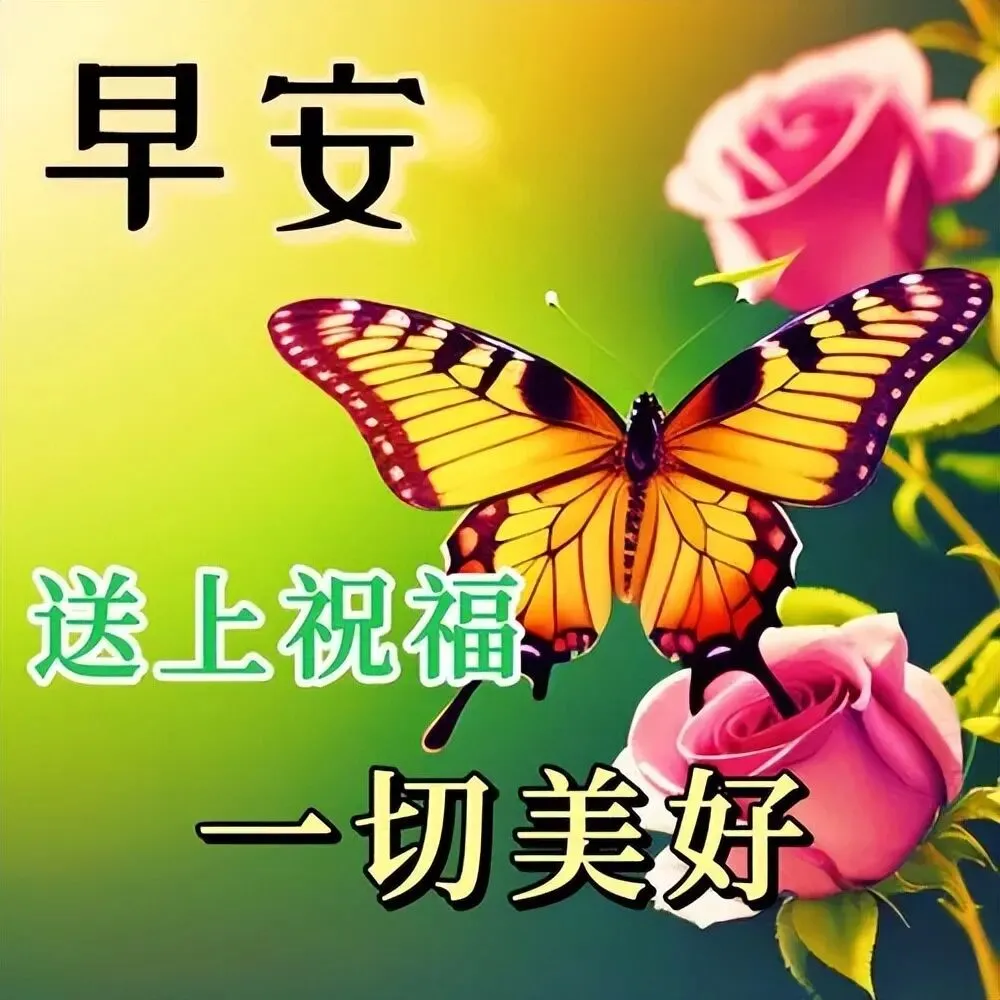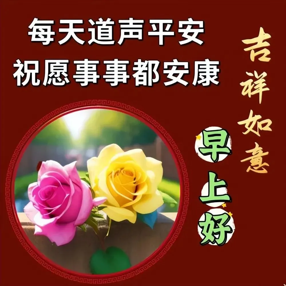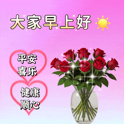 早晨,当朝霞舞动着她柔曼的翅膀,将你的梦轻轻唤醒,一丝清新的空气,一缕带给你快乐的阳光,细嗅鲜花迎朝霞,身体健康幸福家。问候随风传千里,祝福飞鸟送万家。早安吉祥!