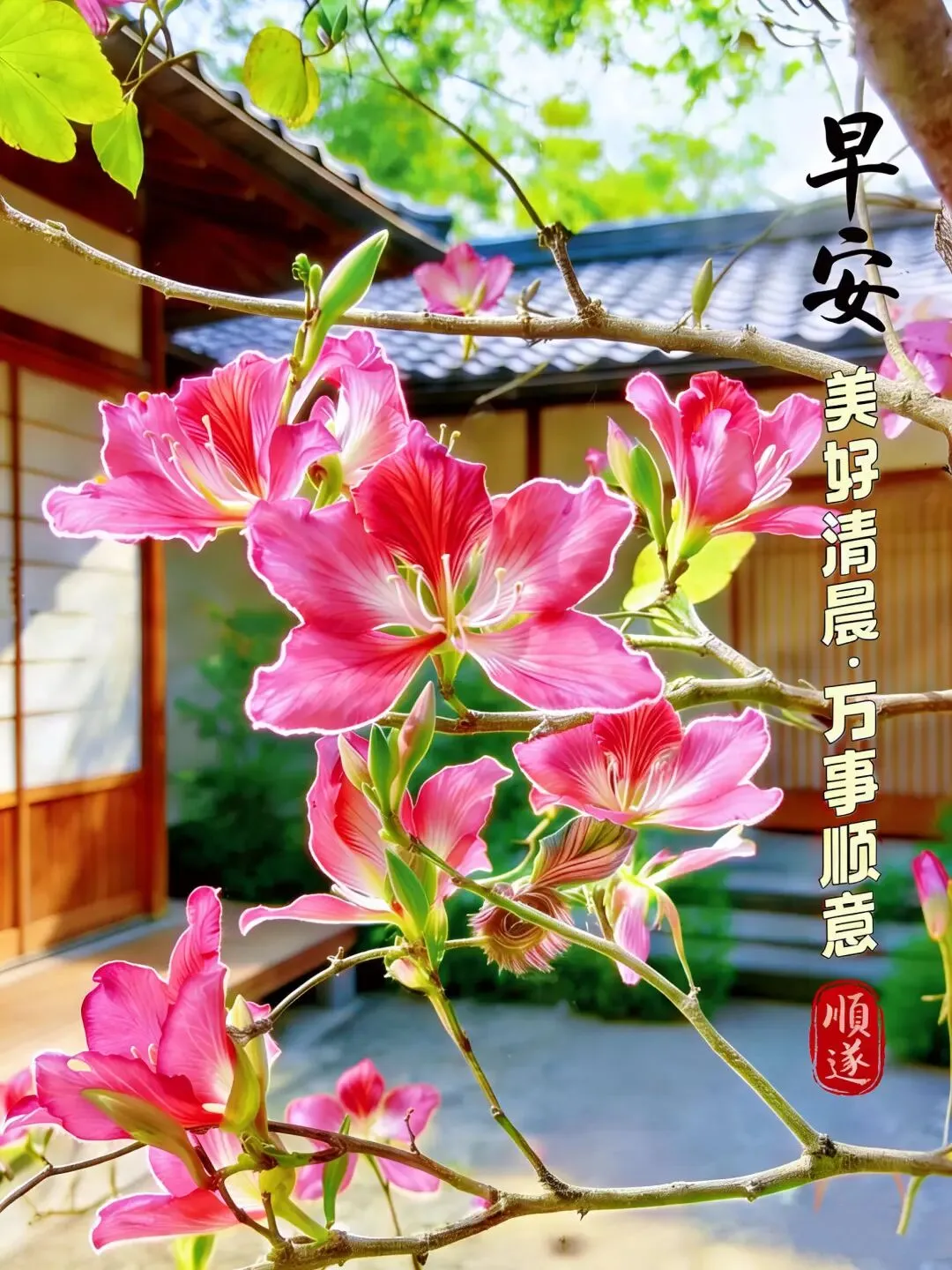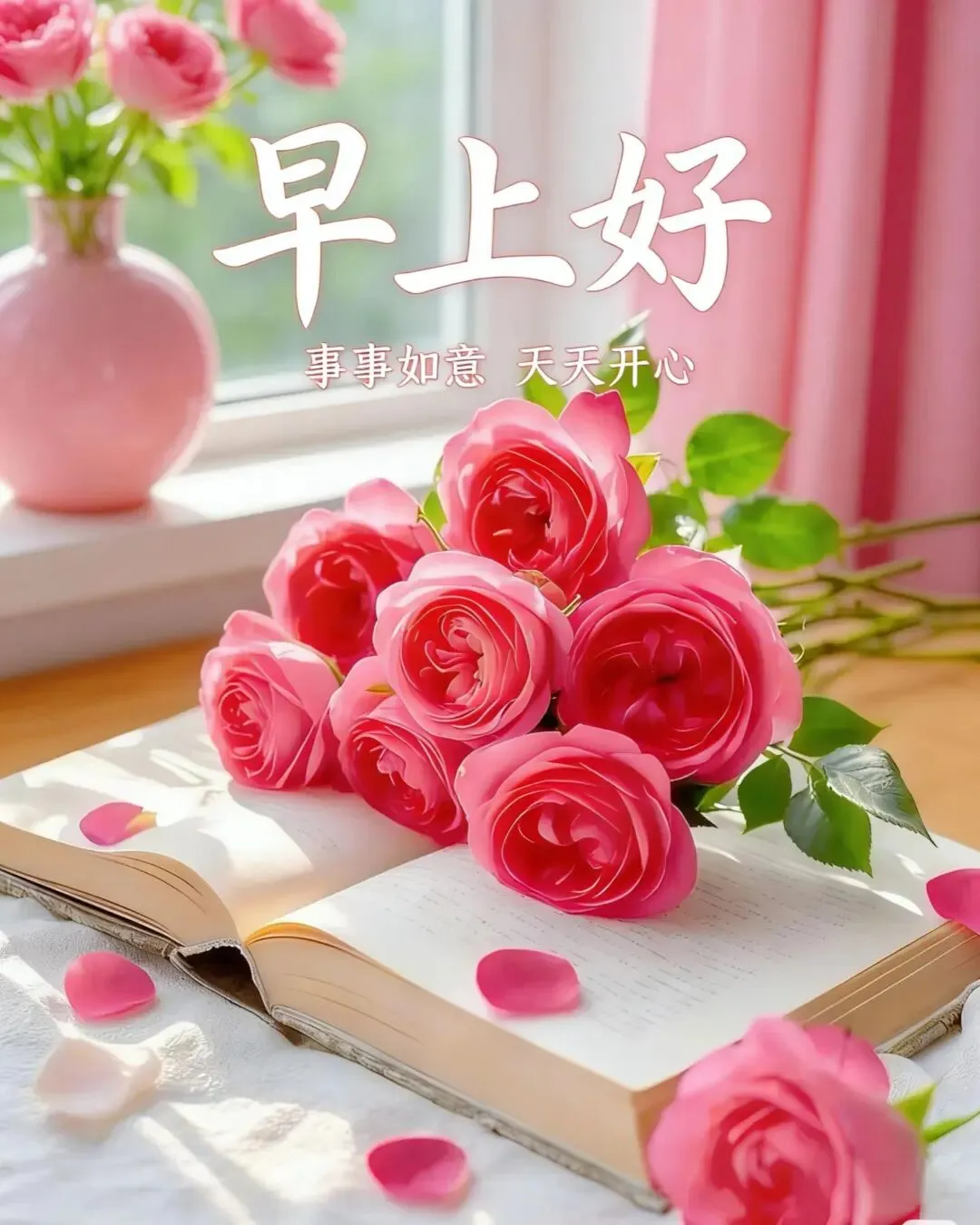 🌞阳光爬上小窗台,晨风送来百花香,元气满满新一天,烦恼抛到九霄外!健康平安最重要,笑容常驻心花开,你我友谊比金坚,早安问候传四海!🌹❤️🍎🌾🙏🎉