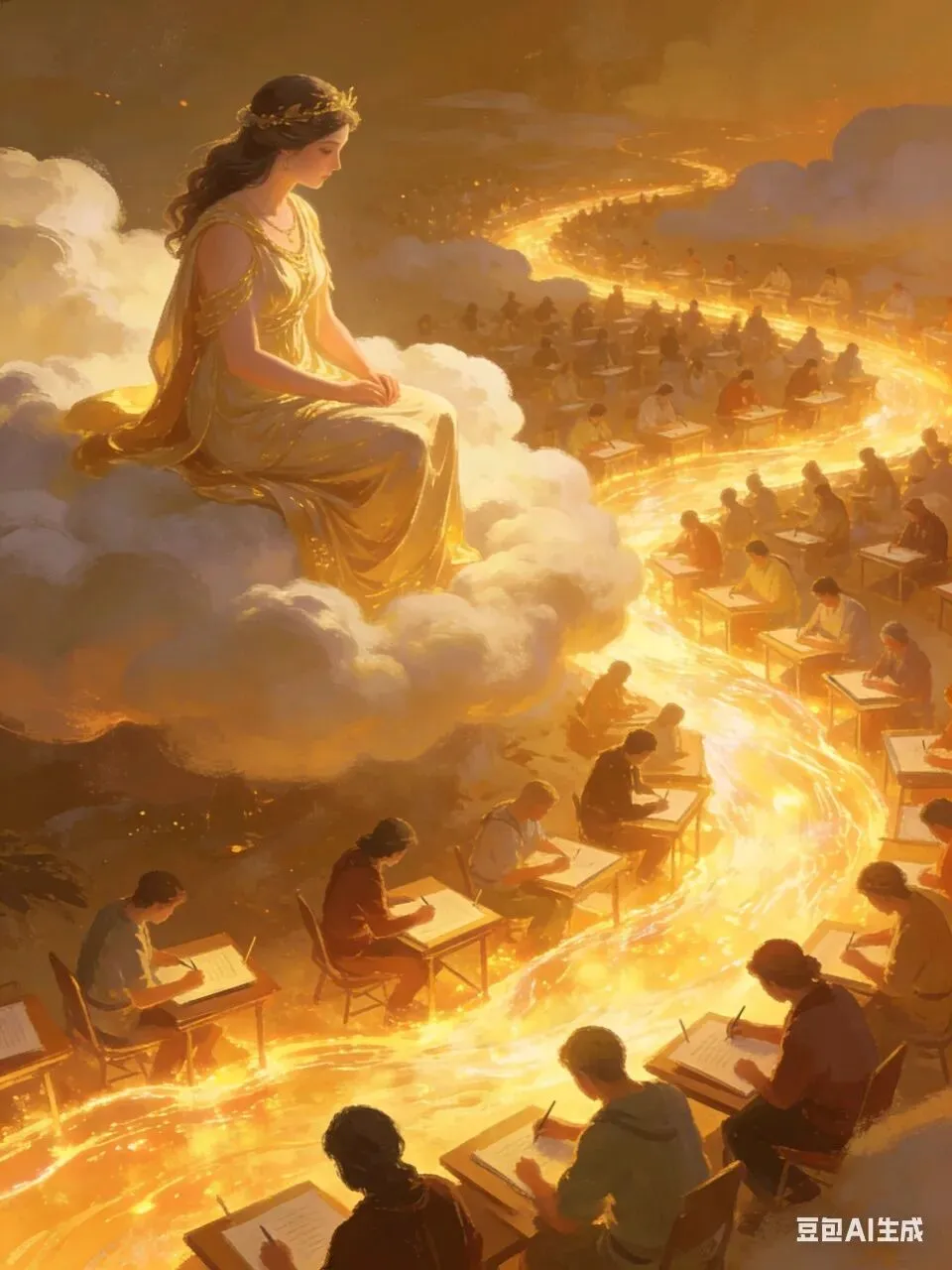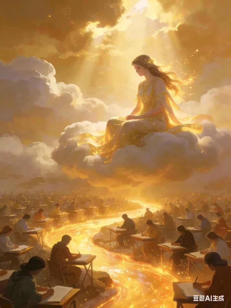 #金色光芒中的智慧 #神秘女神的启示 #学习者的梦幻之旅 #知识海洋里的航行者