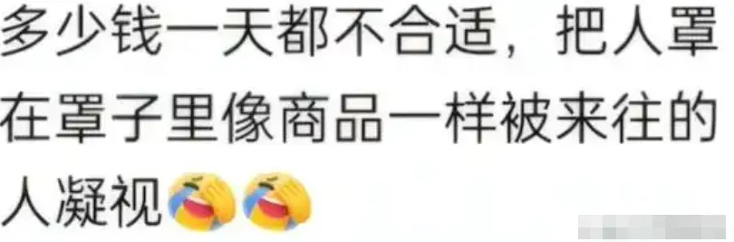 有网友表示 “把活人关在又冷又密封的玻璃盒子里,成为一件被凝视的商品,这个社会风气就完了。”