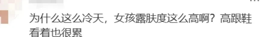 北京10度的天气,路人要穿轻薄羽绒服,模特却光着腿。