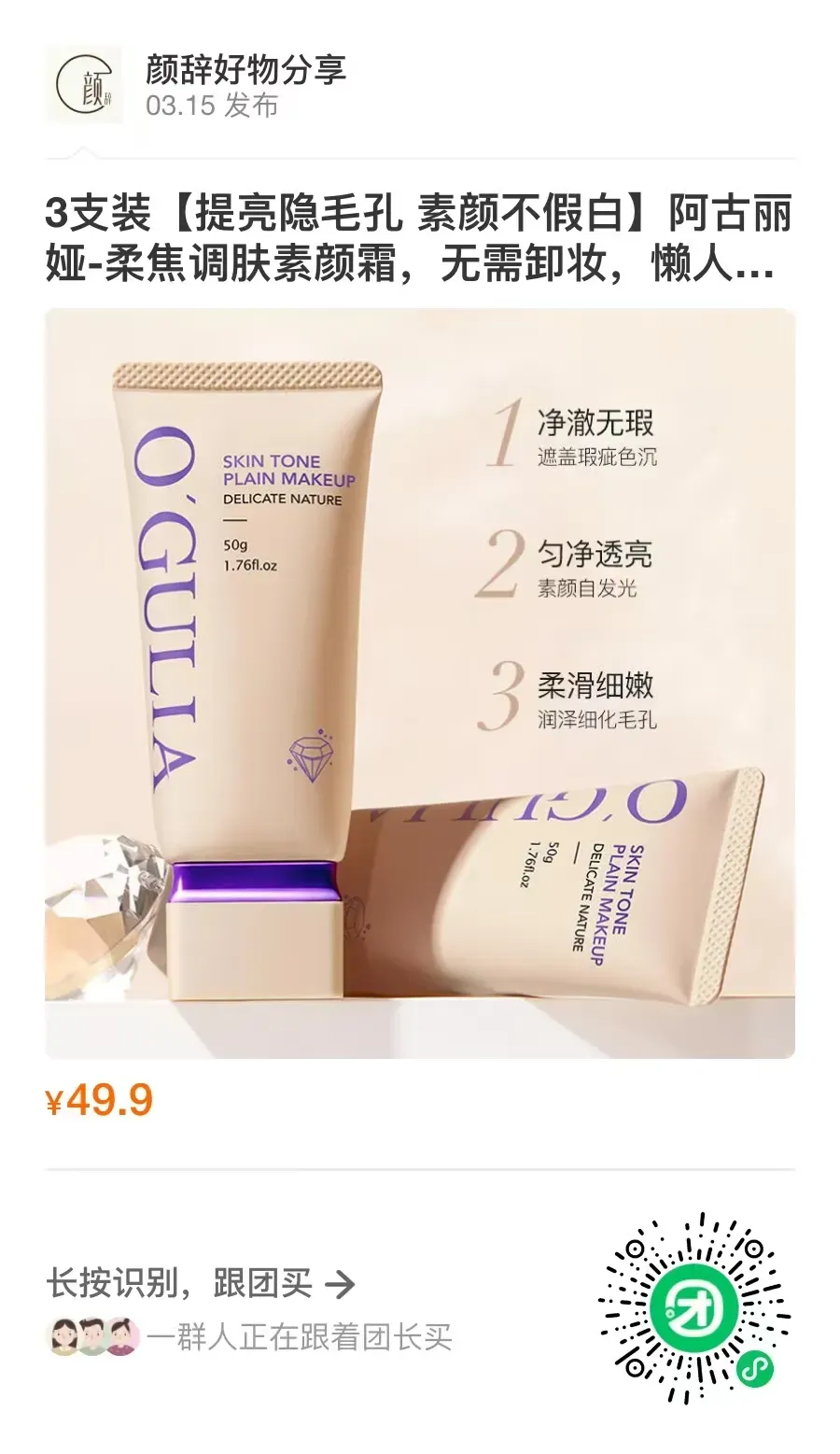 用了阿古丽娅素颜霜,把烦人的小痘印都遮掉了,好像开了柔光滤镜一样,整个人的气质提升了几个level,桃花运都旺了不少。