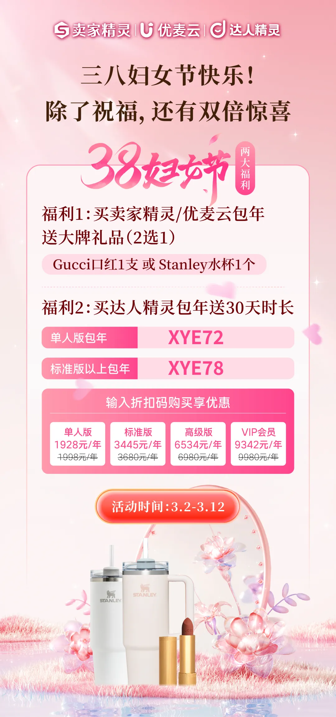 今年,我们把仪式感延续,也把福利升级——特别携手姊妹产品优麦云和达人精灵,一起送出节日心意,Gucci口红、Stanley水杯、会员时长任你选。