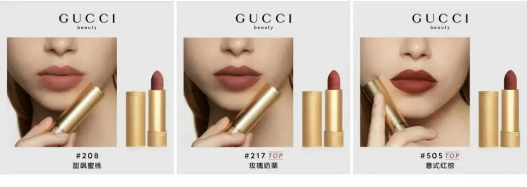 Gucci倾色绒雾唇膏3个热卖色号(217,505,208)(3选1),总有一款符合“她”的气质