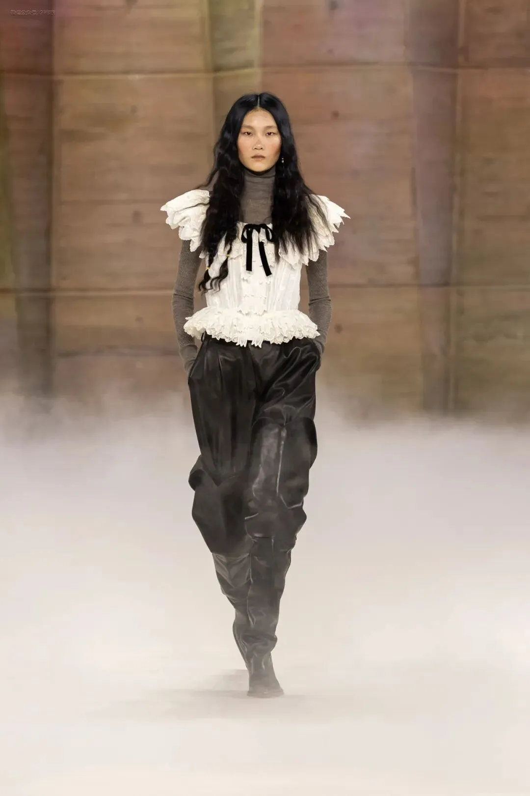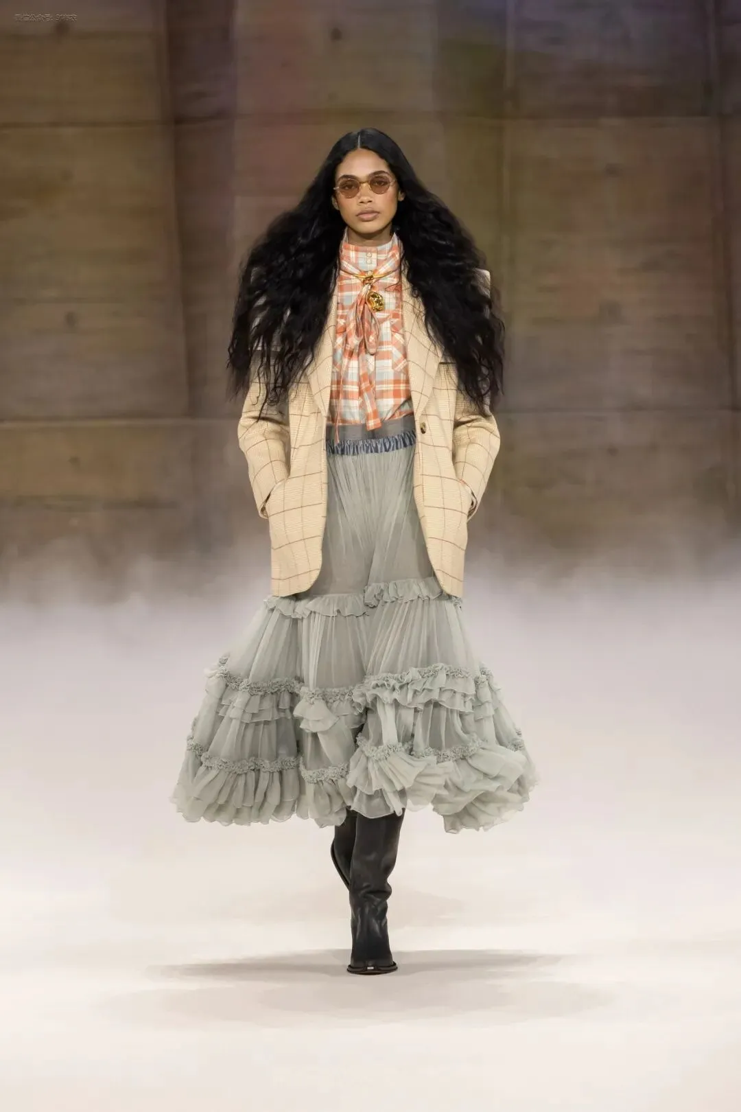 女模行走在“摇晃的T台上”,玩转随性不羁,又酷又高级 | Khaite 2026春夏系列