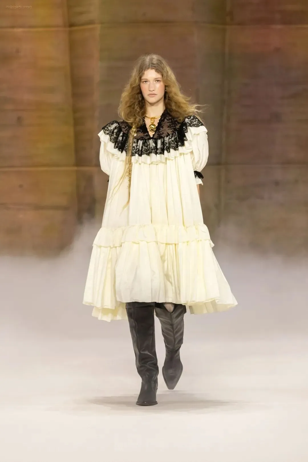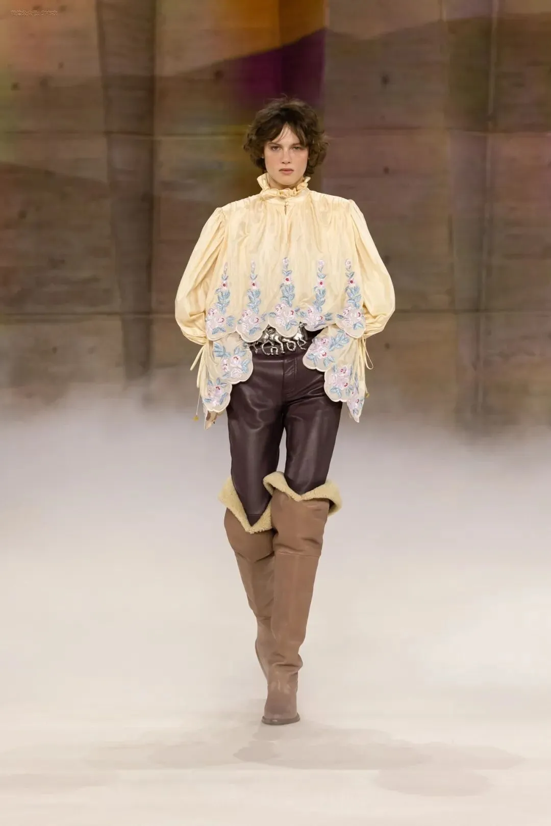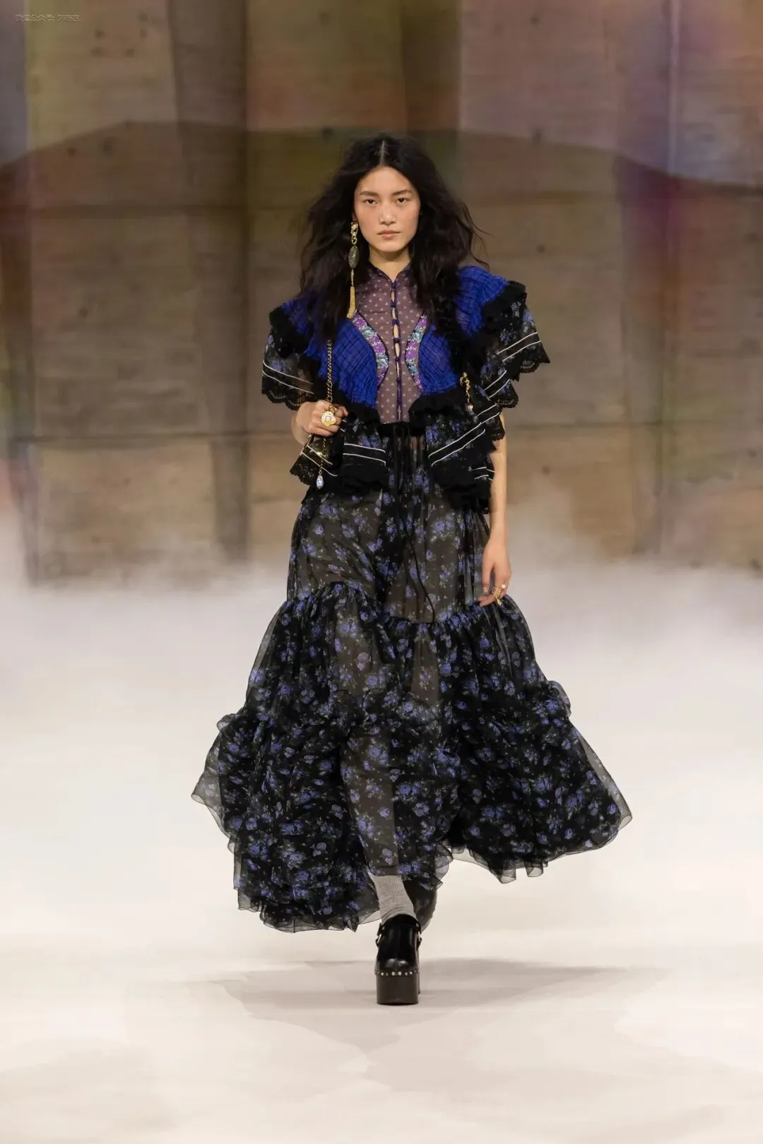 荷叶边领口和大量的草原风格刺绣。