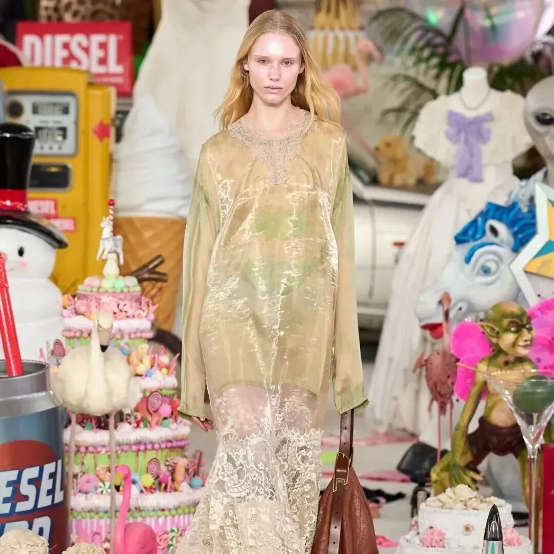 女模穿梭于50000件“回收”物之间,一个沉浸式的视觉奇观  | Diesel 2026秋冬系列