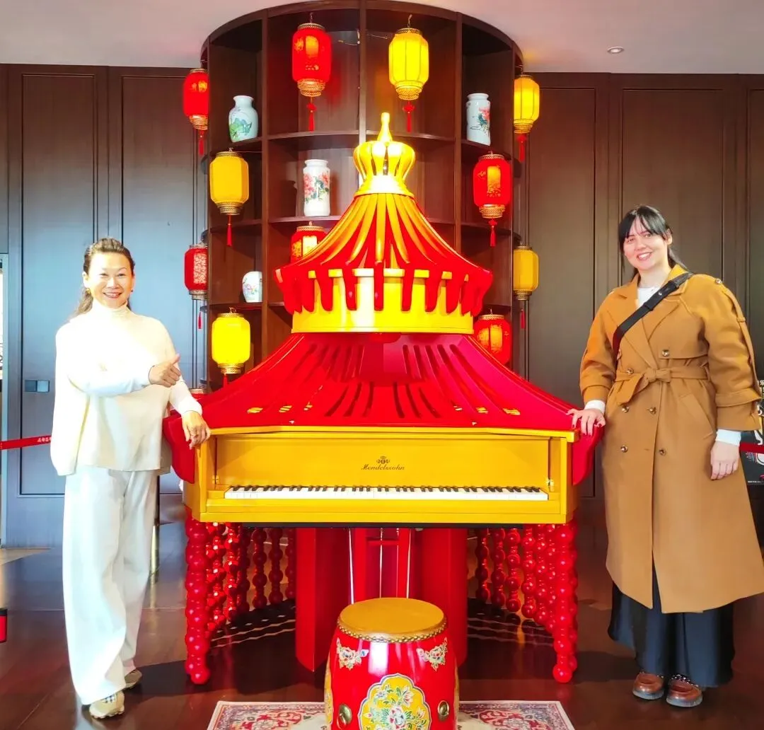 在刘敏辉总监的陪同下,NINA FUŠTAR参观了这座位于成都双流芯谷产业园区的音乐文化地标。作为一座融汇音乐艺术与现代科技的新型博物馆,成都芯智慧音乐博物馆收藏了来自世界各国的300余件古董钢琴及其他古董乐器。