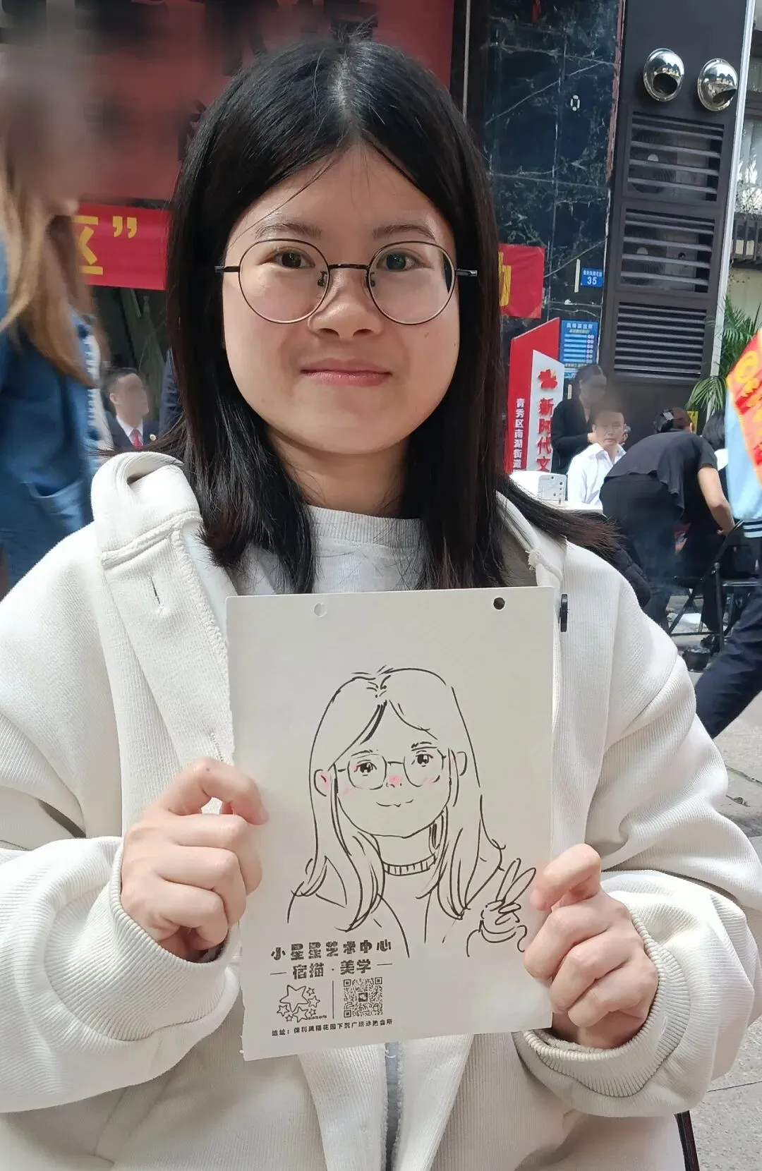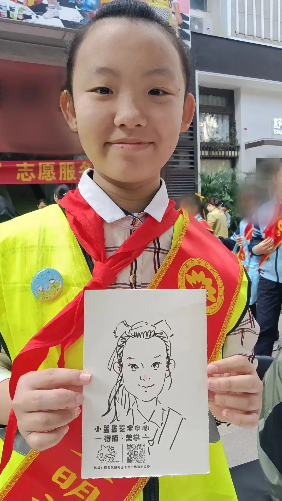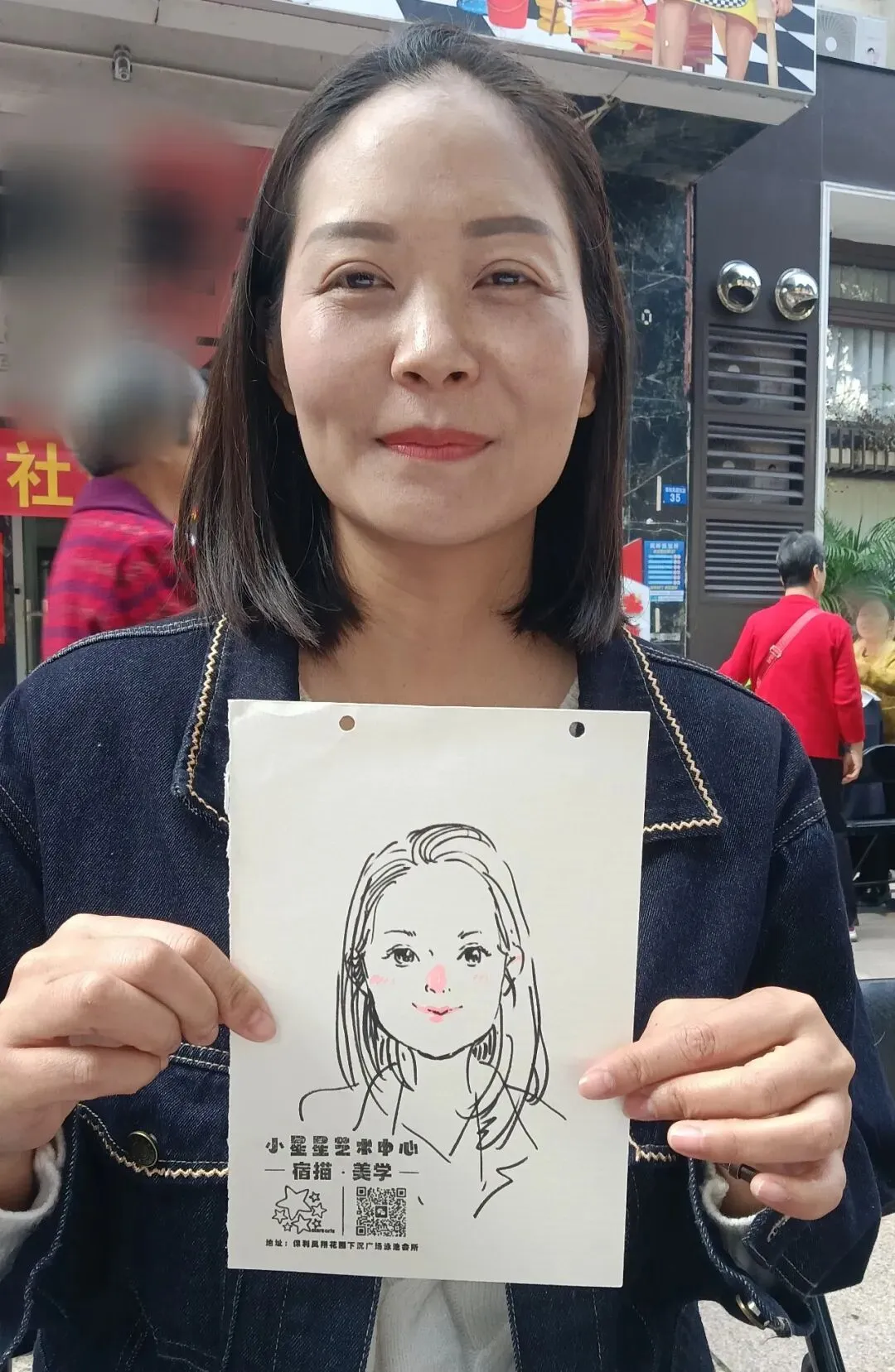 画室的老师们现场支起画具,以耐心与专业,免费为每一位前来的居民绘制专属头像。无论是天真烂漫的小朋友、忙碌的社区工作者,还是和蔼的长辈,都在笔尖的勾勒下,拥有了独一无二的艺术肖像。