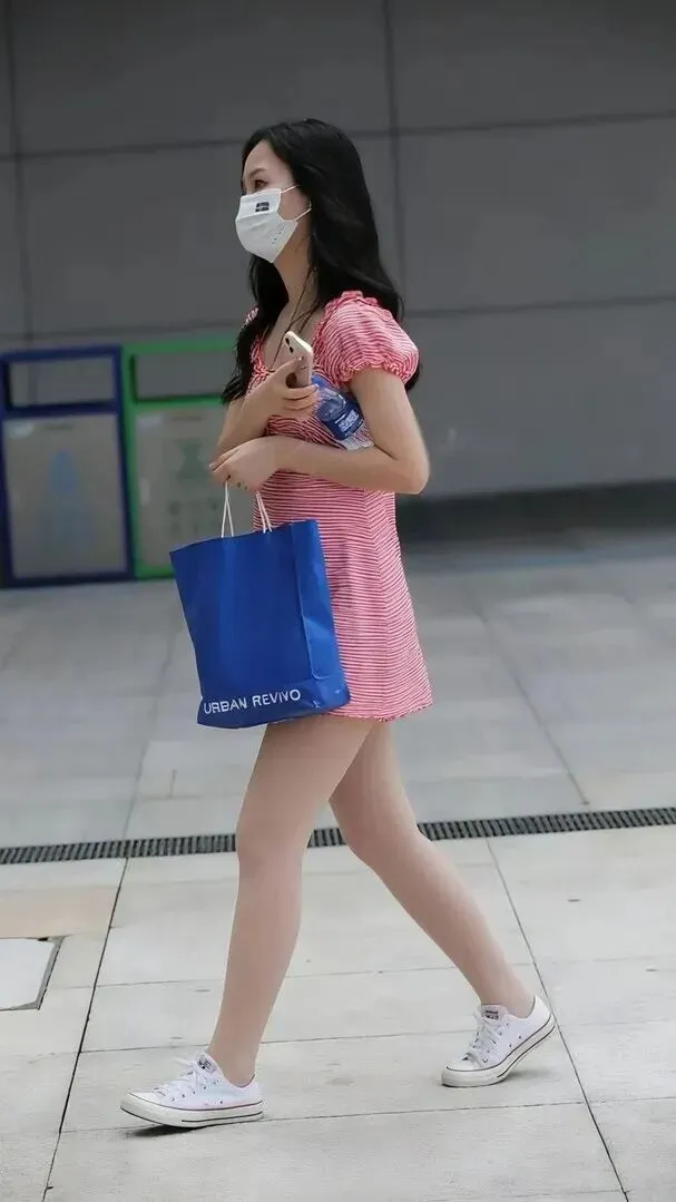 黑长直简单披着,温柔又显气质,和粉裙子配一脸。尽管戴着口罩看不清脸,但是眼神里透露出来的自信却藏不住,整个人都散发出一种“我舒服我就美的”气场。